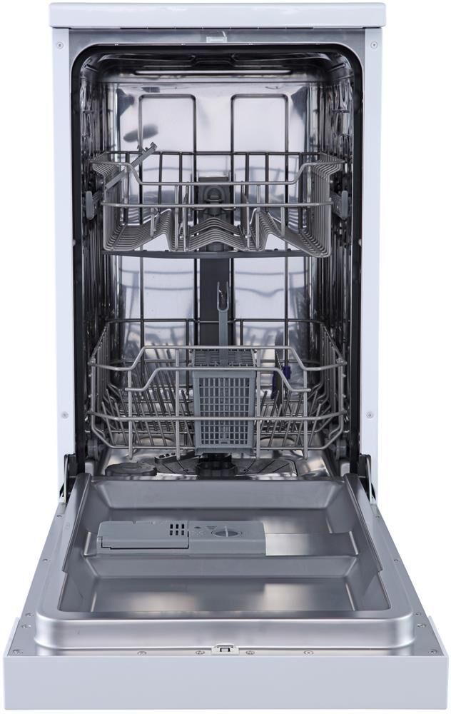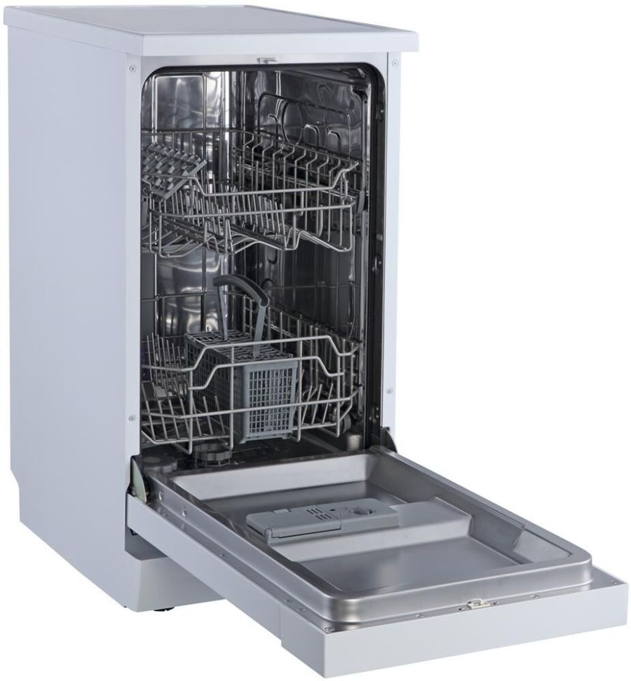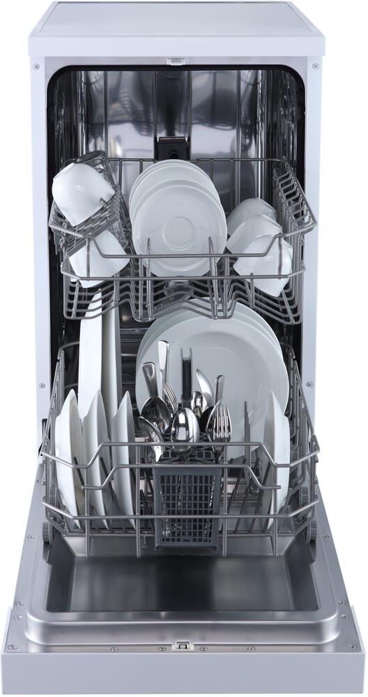 Отдельностоящая посудомоечная машина расcчитана на 9 комплектов; Габариты ВхШхГ: 84,5x44,8x60см; Отсрочка запуска: 3/6/9ч; LED-индикация; Блокировка от детей; Класс: А+; Режим 1/2 загрузки; 6 программ: интенсив, ECO, обычная, стекло, 90 минут, быстрая; Регулируемая по высоте корзина; Расход воды за цикл: 10л; Энергопотребление за цикл: 0,7 кВт*ч