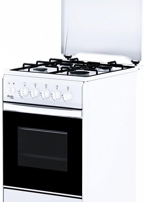 Габаритные размеры, см50 х 60 х 85 * Материал варочной поверхностиэмаль * Электророзжиг горелок стола * Профильная решетка * Материал крышки/щитка металл * Цвет белый * Материал духового шкафа эмаль * Объем духовки 50л * Газ-контроль горелок духовки * Подсветка духовки * Двойное стекло дверцы духовки * хоз. отсек *