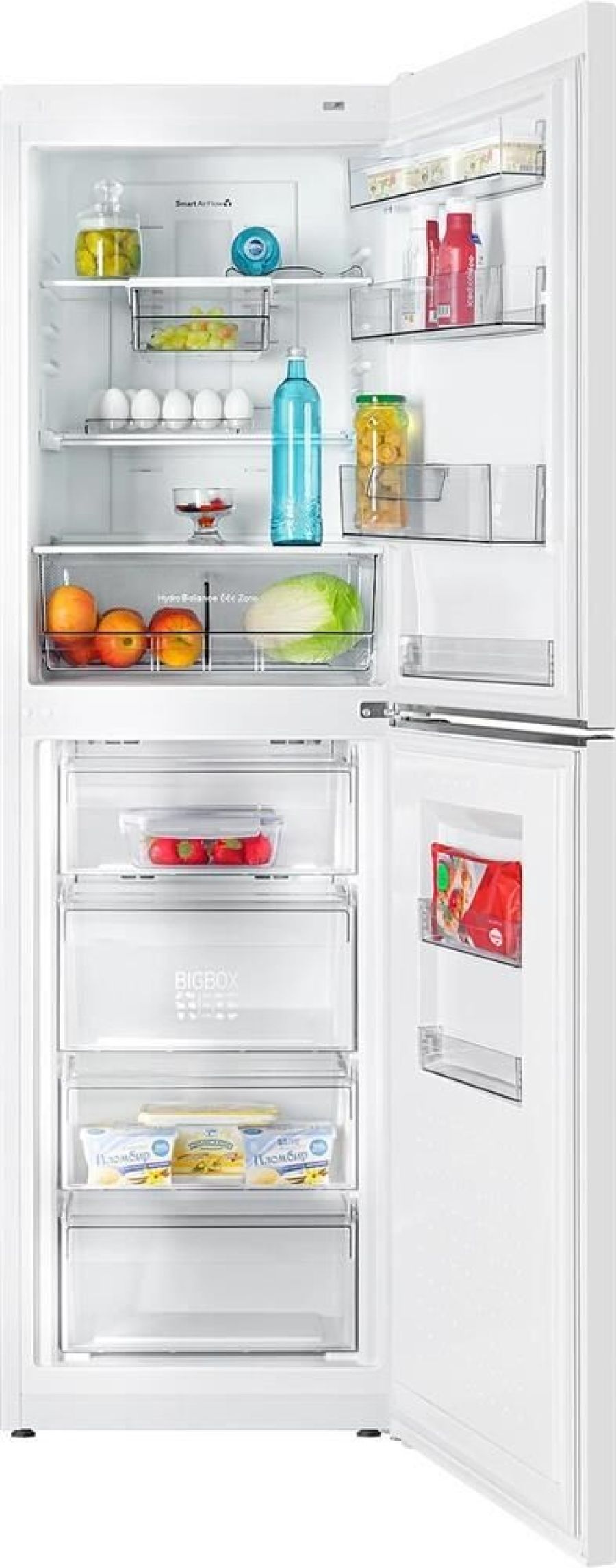 Двухкамерный холодильник с дисплеем. Система охлаждения FULL NO FROST. Цвет корпуса белый. Класс энергоэффективности A+. Уровень шума 42 дБА. Общий объем 356л. Полный полезный объeм 312 л. Полезный объем холодильной/морозильной камеры 187/ 125л. Самодиагностика. Функция Суперохлаждение. Функция Отпуск. Автоматическая система оттаивания холодильной камеры. Номинальное время повышения температуры продуктов от -18 °C до -9 °C при отключении электроэнергии 15ч. Температура хранения замороженных продуктов в морозильной камере -18 °C. Мощность замораживания 10 кг/сутки. Размер Ш/В/Г 1968x595x660 мм. Вес 78кг.