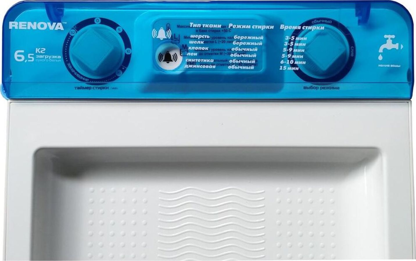 (ШхГхВ) 48х45х84 см.Цвет белый/голубой.Загрузка сухого белья (кг) 6.5 Двигатель Повышенной мощности. Активатор нового поколения. Фильтр для сбора ворса и пуха. Количество программ стирки 2. Сливной насос.Реверс.Максимальная потребляемая мощность (Вт) 300 Напряжение /Частота (В/Гц) 220-230 / ~50. Класс безопасности IP54. Материал корпуса Полипропилен.Вес 11,5кг.