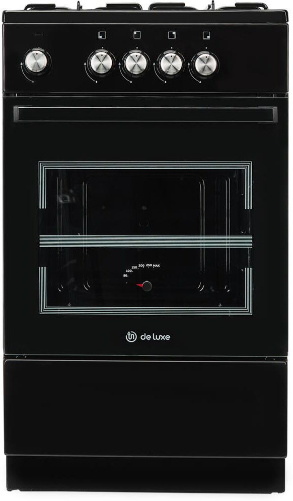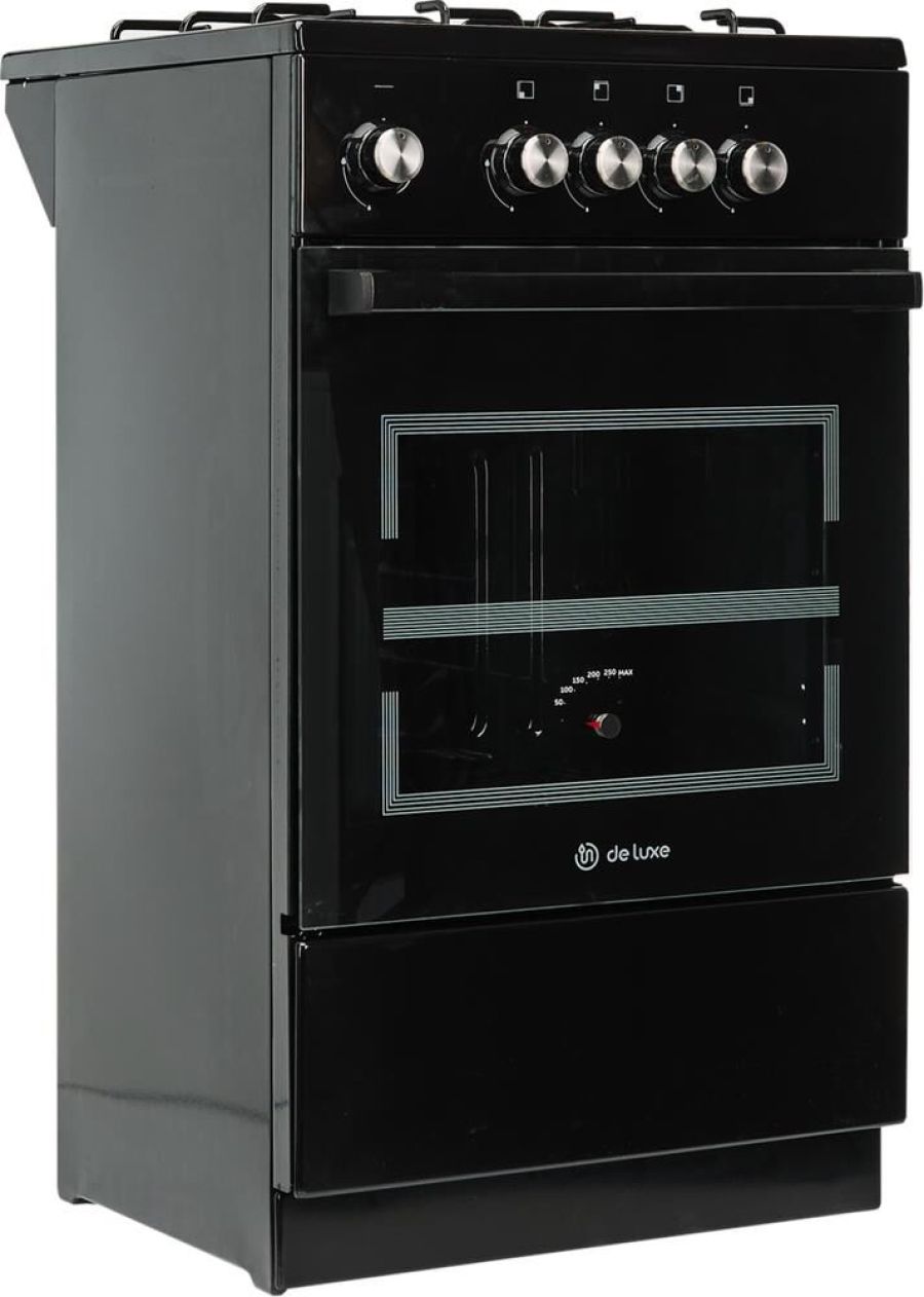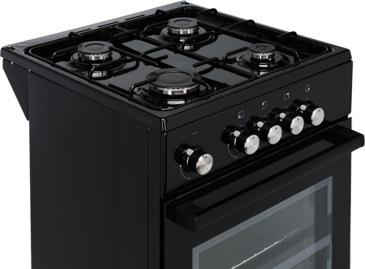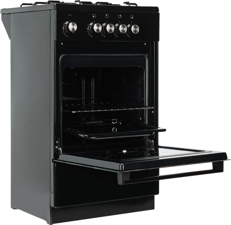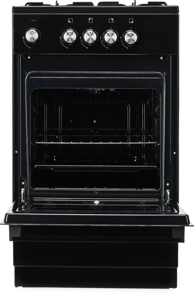 Типоразмер 50*50см, духовка с газ-контролем духового шкафа, духовка - 43 л, 1 противень, цвет черный, черная эмалированная решетка рабочего стола, ЦВЕТ ЧЕРНЫЙ ГЛЯНЦЕВЫЙ. Данная модель дополнена удобным ящиком для хранения кухонных принадлежностей.