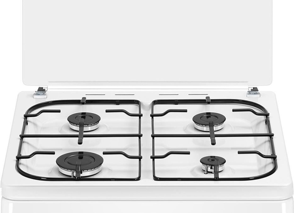 (ШхГхВ)63x50x87см.Цвет белый.Комплект жиклеров для подключения баллоного газа (шт.) 1.Термометр.Объем духового шкафа (л) 58.Крышка варочной поверхности металлическая.Электроподжиг.Типы подключаемого газа магистральный/балонный Количество конфорок 4.Газ-контроль.Внутренняя подсветка.Материал корпуса эмалированная сталь.Количество стекол дверцы 2.Внутреннее покрытие черная эмаль.