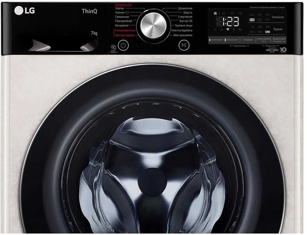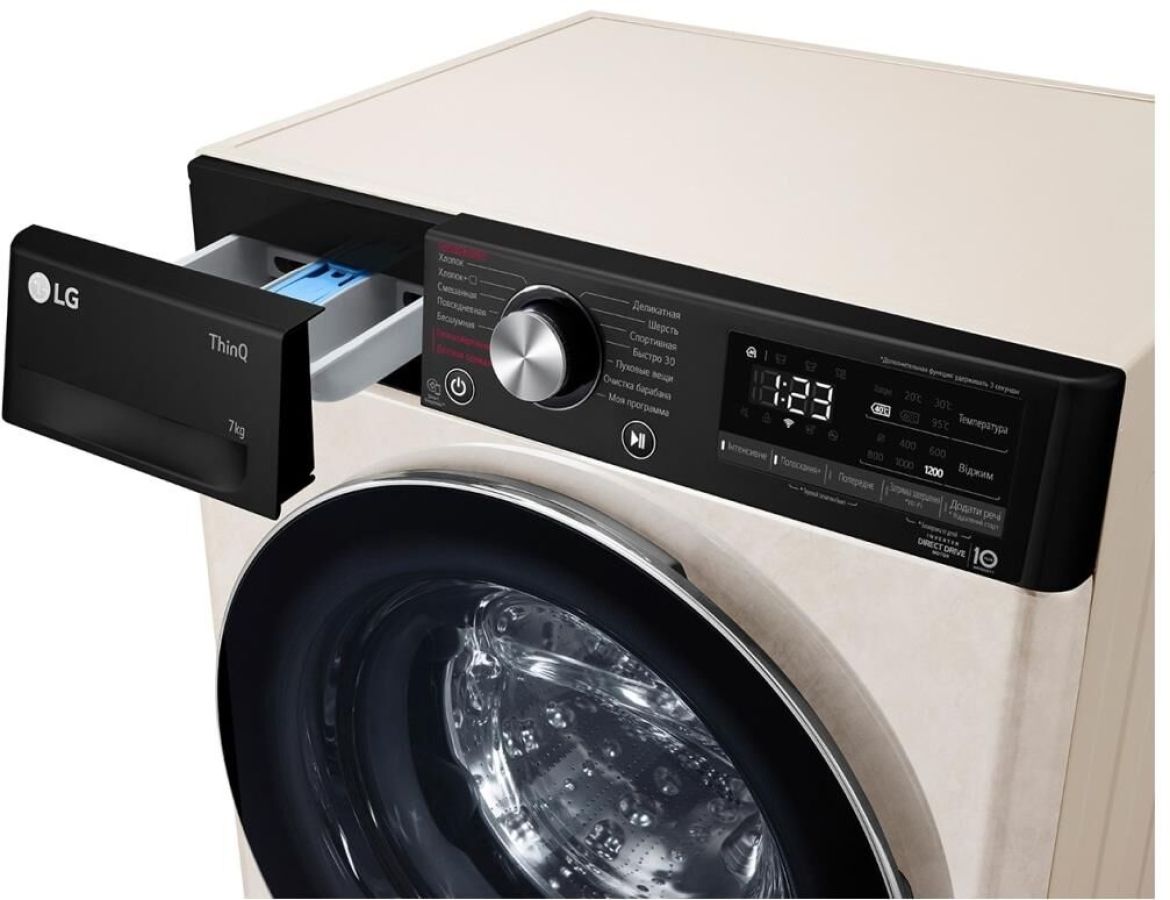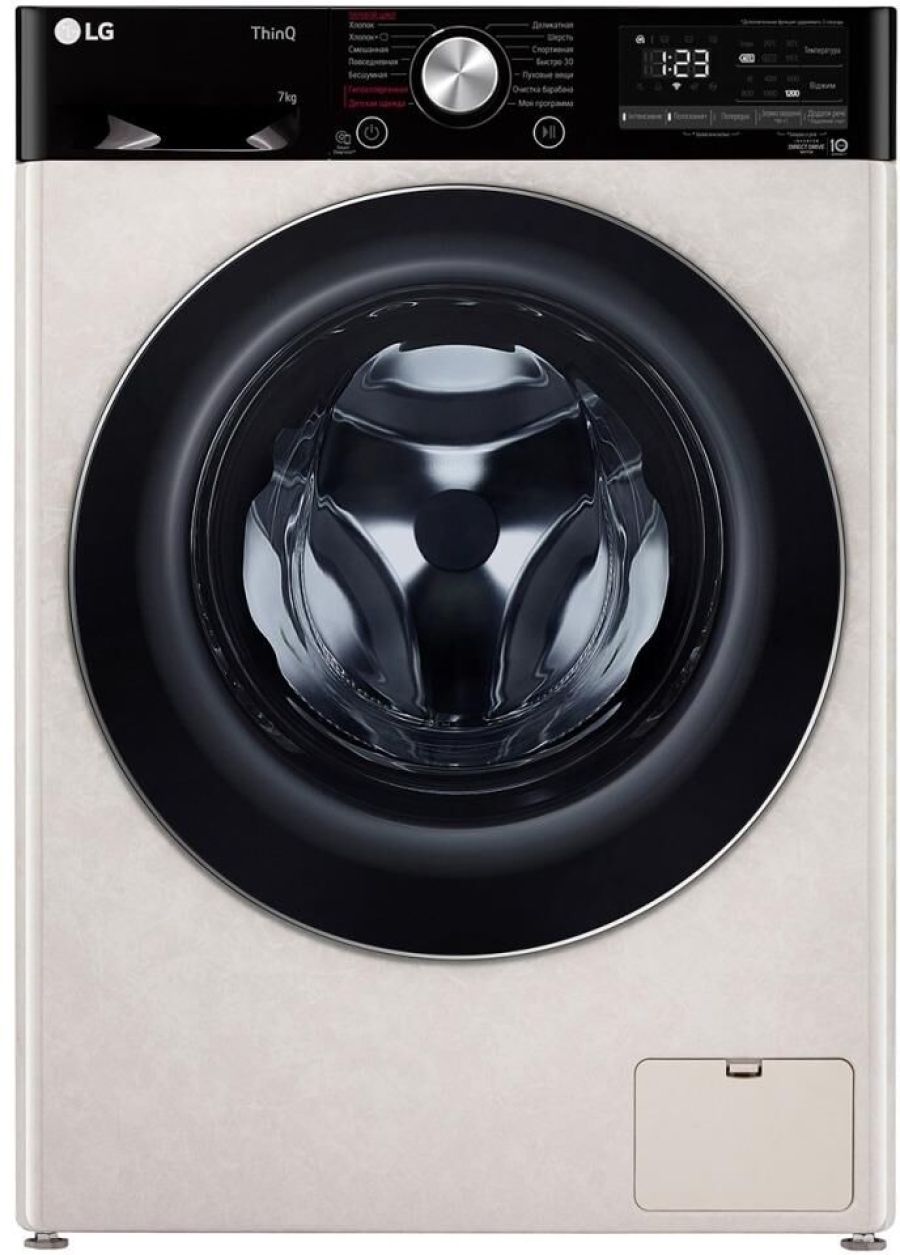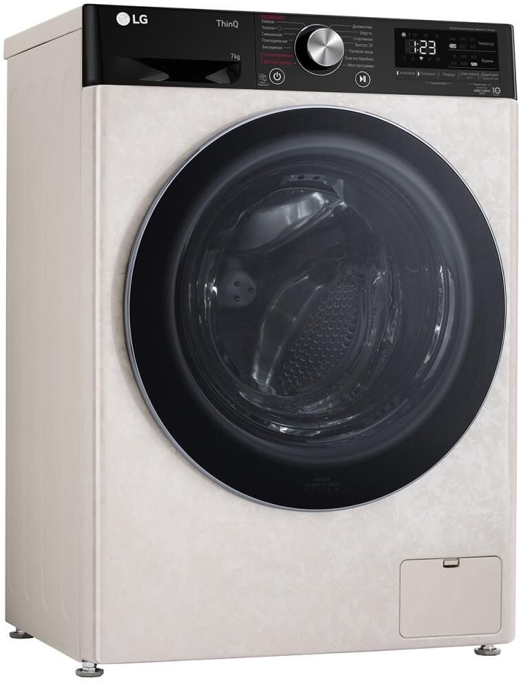 ШхГхВ: 60х45х85 см * Цвет бежевый * дозагрузка белья через основной люк * загрузка: 7 кг * Прямой привод * Инверторный двигатель * отжим при 1200 об/мин * Количество программ 14 * класс энергопотребления: A * Управление со смартфона * электронное управление * Контроль дисбаланса * защита от протечек * защита от детей * Дополнительная информация возможность управления через приложение SmartThinQ; технология LG Steam™; функция очистки барабана; Wi-Fi *