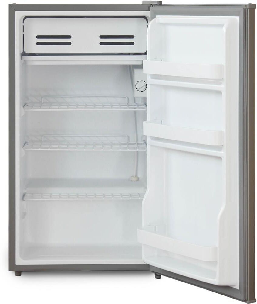 Габариты (ВхШхГ): 85х47,2х45см; Цвет: металлик; Объем холодильной камеры: 93л; Тип управления: механический; Количество компрессоров: 1; Корректированный уровень звуковой мощности (не более), дБа: 42; Хладагент: R-600a; Номинальная потребляемая мощность, Вт: 77; Потребление энергии при температуре окружающего воздуха 25°C (не более), кВт*ч/24ч: 0,3; Класс энергетической эффективности: A+; Средняя температура в холодильной камере,°C: 4; Ручная система оттаивания холодильной камеры; Перенавешиваемые дверцы; Встроенная ручка