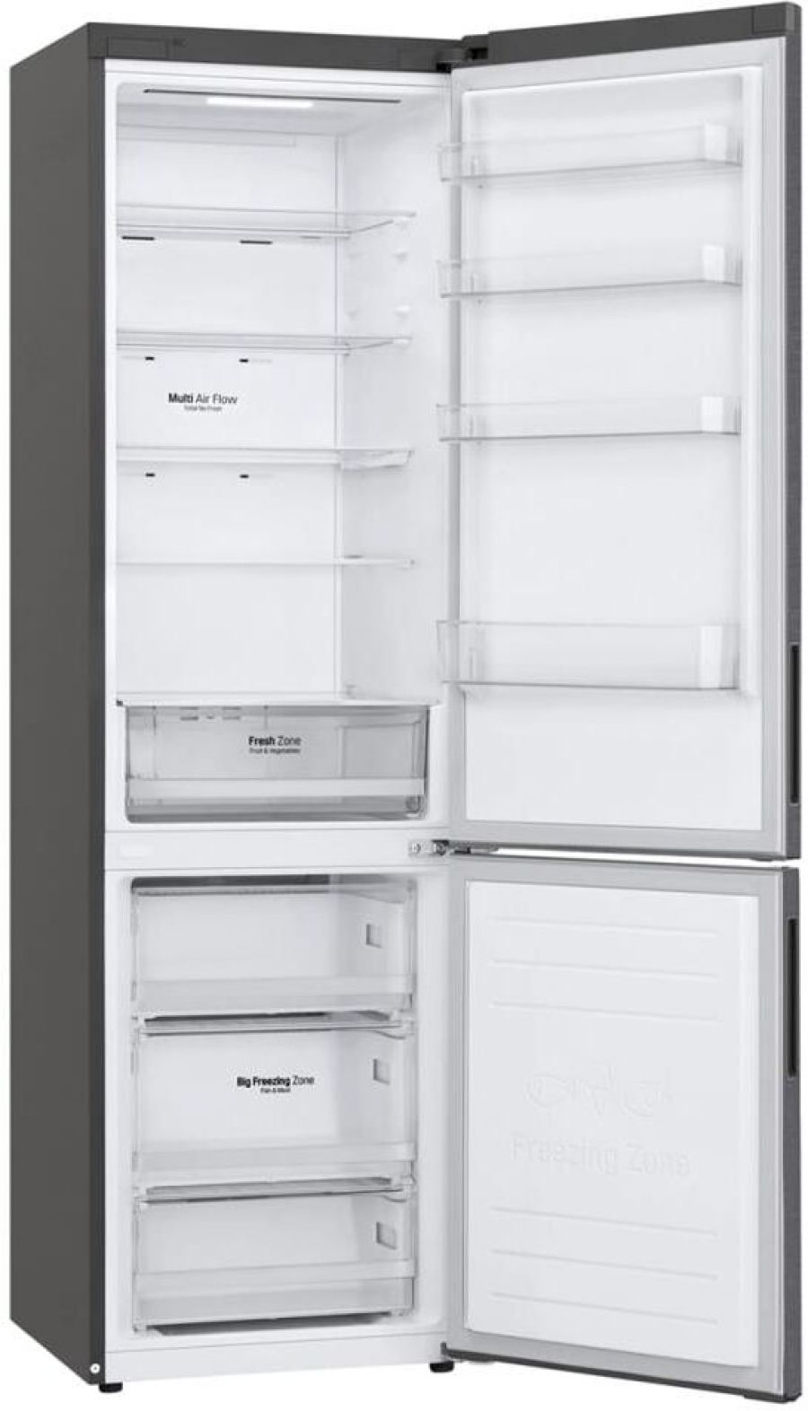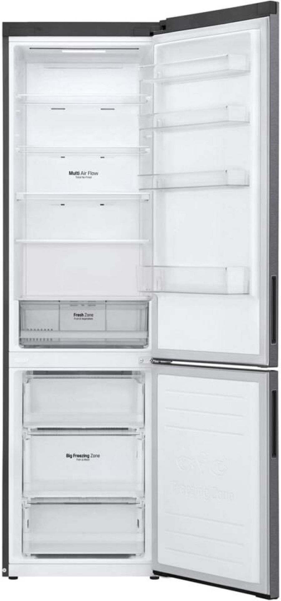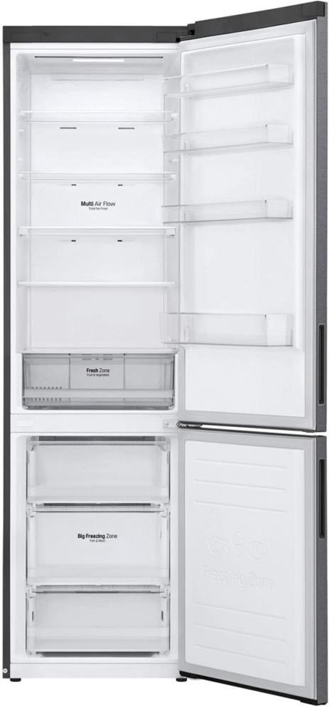 Габариты (Ш*В*Г, мм) 595*2030*682 Вес (кг) 74 Общий объем 384 (277/127) Тип холодильника Холодильник с нижней морозильной камерой Система охлаждения Total No Frost Тип компрессора Умный Инверторный Материал отделки двери VCM Материал отделки корпуса Flat Тип ручки СкрытаяДисплей Кнопочный, LED Расположение дисплея Внешний Класс энергоэффективности A+ Потребление энергии (Вт ч/год) 325 Уровень шума (дБА) 36 Хладагент R600a Система многопоточного охлаждения Multi Air Flow Экспресс-заморозка Экспресс-охлаждение Климатический класс SN-ST Блокировка дисплея Сигнал открытой двери Интеллектуальная система диагностики Smart Diagnosis Мощность замораживания (кг/сут) 12 Время хранения продуктов при отключении энергопитания (ч) 16 Технология DoorCоoling+ Антибактериальный дверной уплотнитель Bio Shield Лоток для льда Полки 2 Прозрачный ящик 3 Тип подсветки LED Полки 3 Складная полка Дверные корзины 4 Лоток для яиц 1 * 10 яиц Цвет графитовый