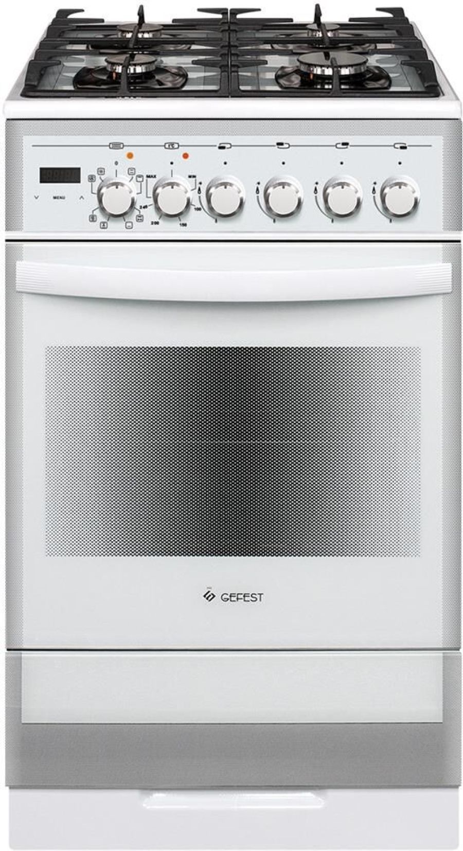Габаритные размеры ШхГхВ: 50х58.5х85 см * Цвет: белый. Варочная поверхность: стеклянная. * Объём духовки: 55 л. Духовка: электрическая. * Вертел с электроприводом * Таймер сенсорный * Выдвижной ящик для посуды и принадлежностей * Терморегулятор (термостат) * Газ-контроль горелок стола * Ускоренный нагрев с конвекцией * Гриль электрический * Чугунные решетки горелок стола * Ножки регулировочные * Шашлычница * Подсветка духовки одинарная * Электророзжиг горелок, встроенный в ручки * Съемные проволочные направляющие духовки * Количество зон приготовления: 4 * Масса нетто, кг: 45.8 * Масса брутто, кг: 50.3 * Класс энергоэффективности: A * Класс электробезопасности: I