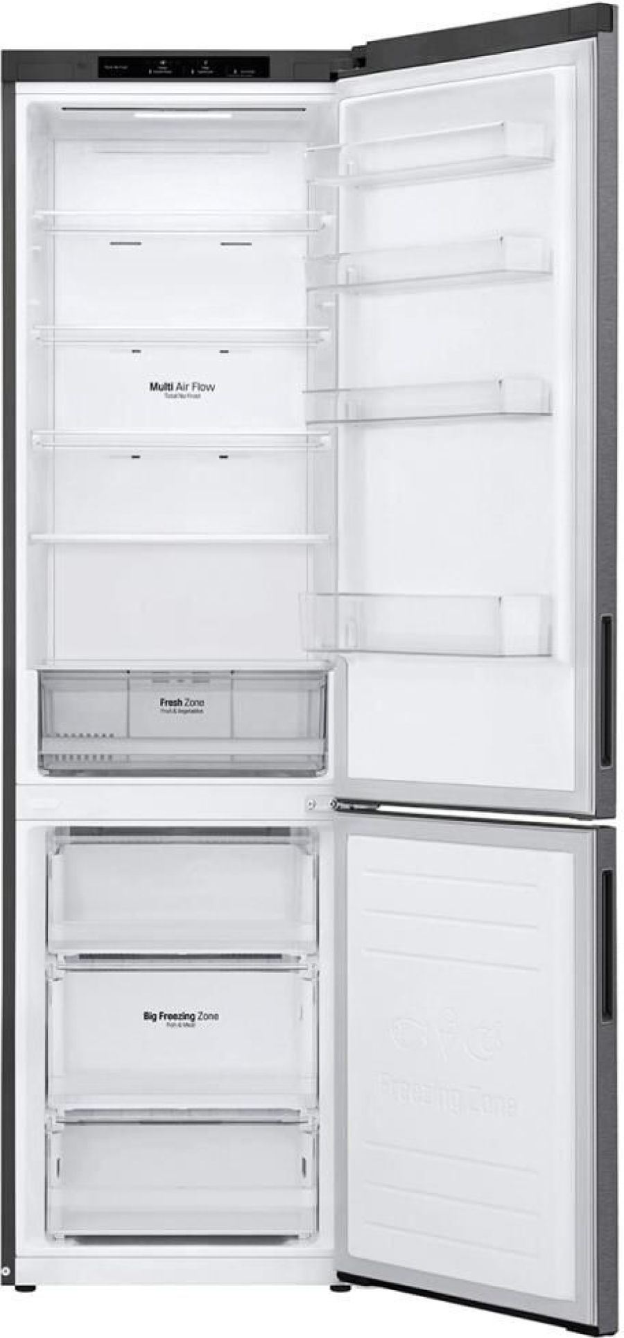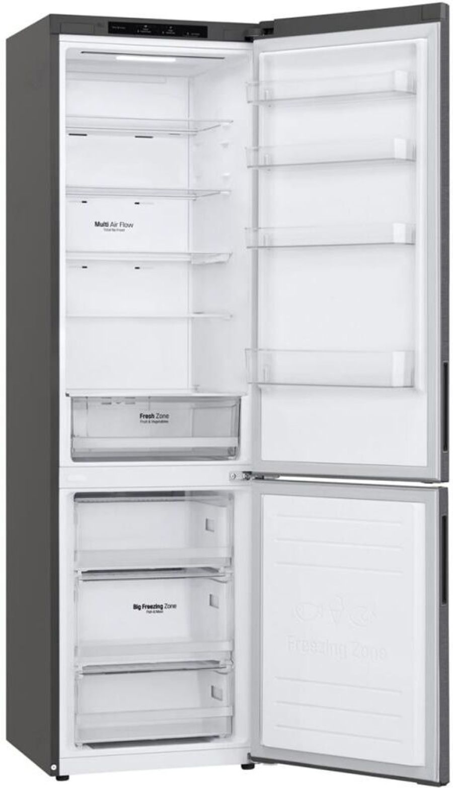 Габариты ШхВхГ 595 x 2030 x 682мм. * Объем общий 419л= Мороз.камера127 Холод.камера 292 * Экспресс заморозка. * Сигнал открытой двери * Total No Frost. * Вес 74кг. * Уровень шума (Дб)36. * Класс энергопотребления А+. * Энергопотребление в год ( кВТ/год)325. * Время хранения продуктов при отключении электропитания (ч)16. * Мощность замораживания (кг/сут)12 * Климатический класс SN-ST. * Тип ручки Side Pocket * Система многопоточного охлаждения Multi Air Flow * Антибактериальный дверной уплотнитель Bio Shield * Технология DoorCоoling+ * Цвет графит