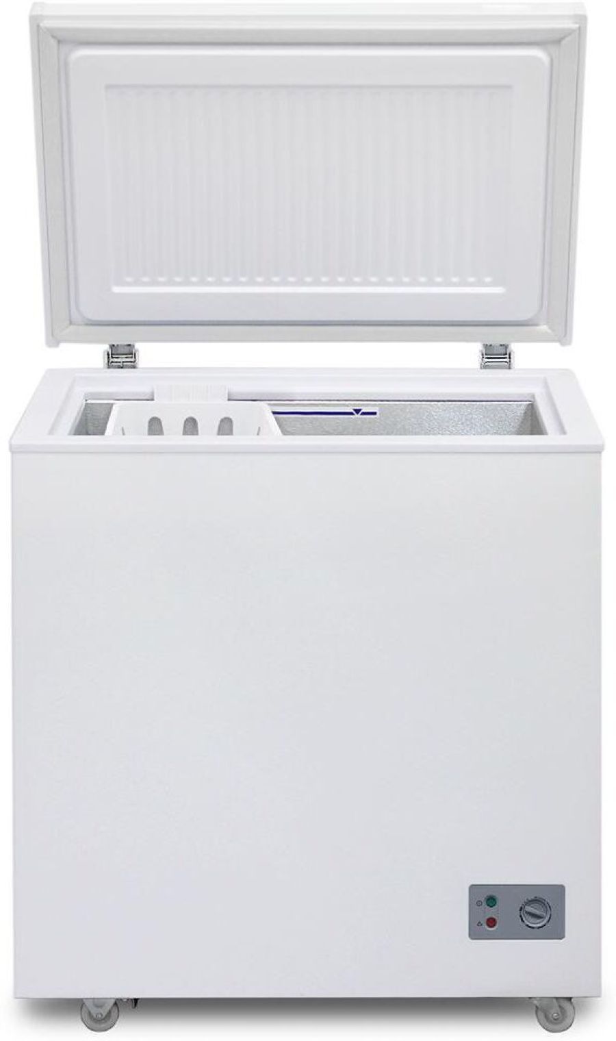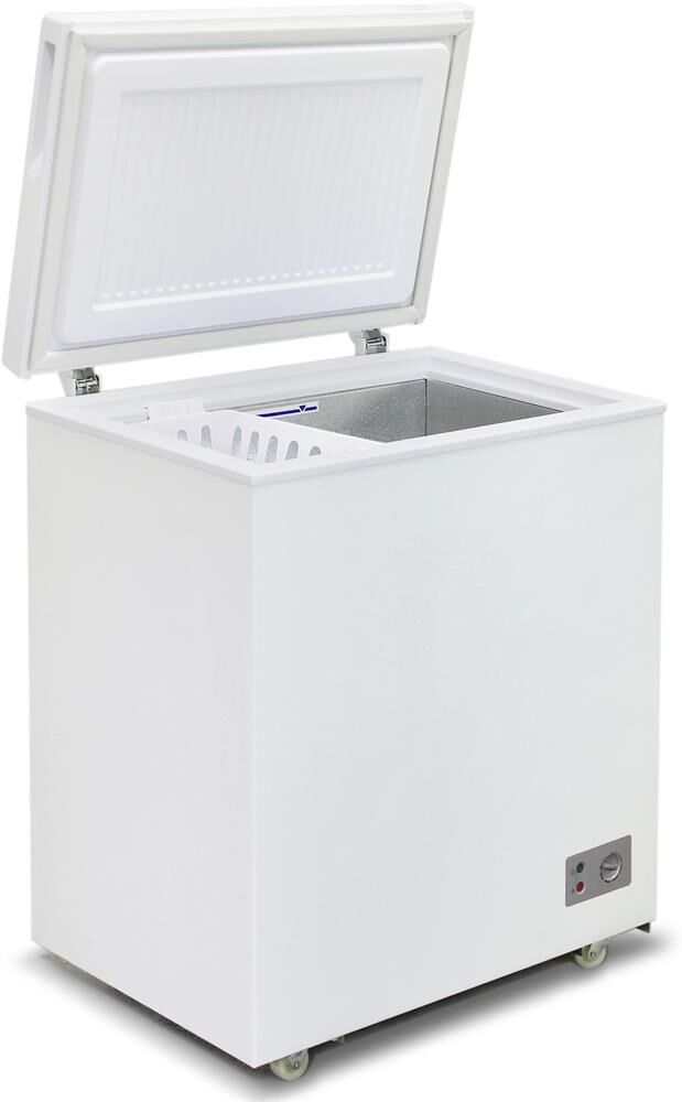 Габариты: (ШхГхВ)75,5х54,5х81,5см; Объем: 145 л; Вес: 27кг; Температурный режим: -18 °С; Крышка: глухая; Количество корзин в комплекте: 1; Напряжение: 220 В; Потребляемая мощность: 0.09 кВт/ч; Ручная разморозка; Хладагент: R600a; 4 колеса; Энергопотребление при температуре окружающего воздуха 24 °С, не более: 1 кВт*ч/24ч; Цвет: белый