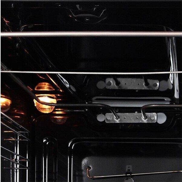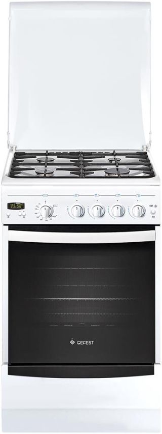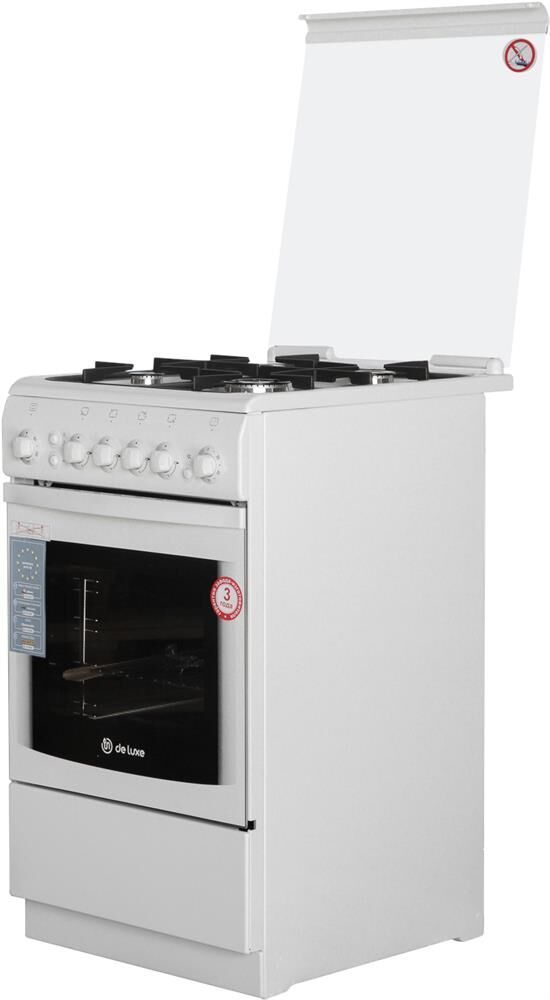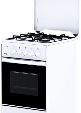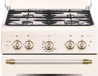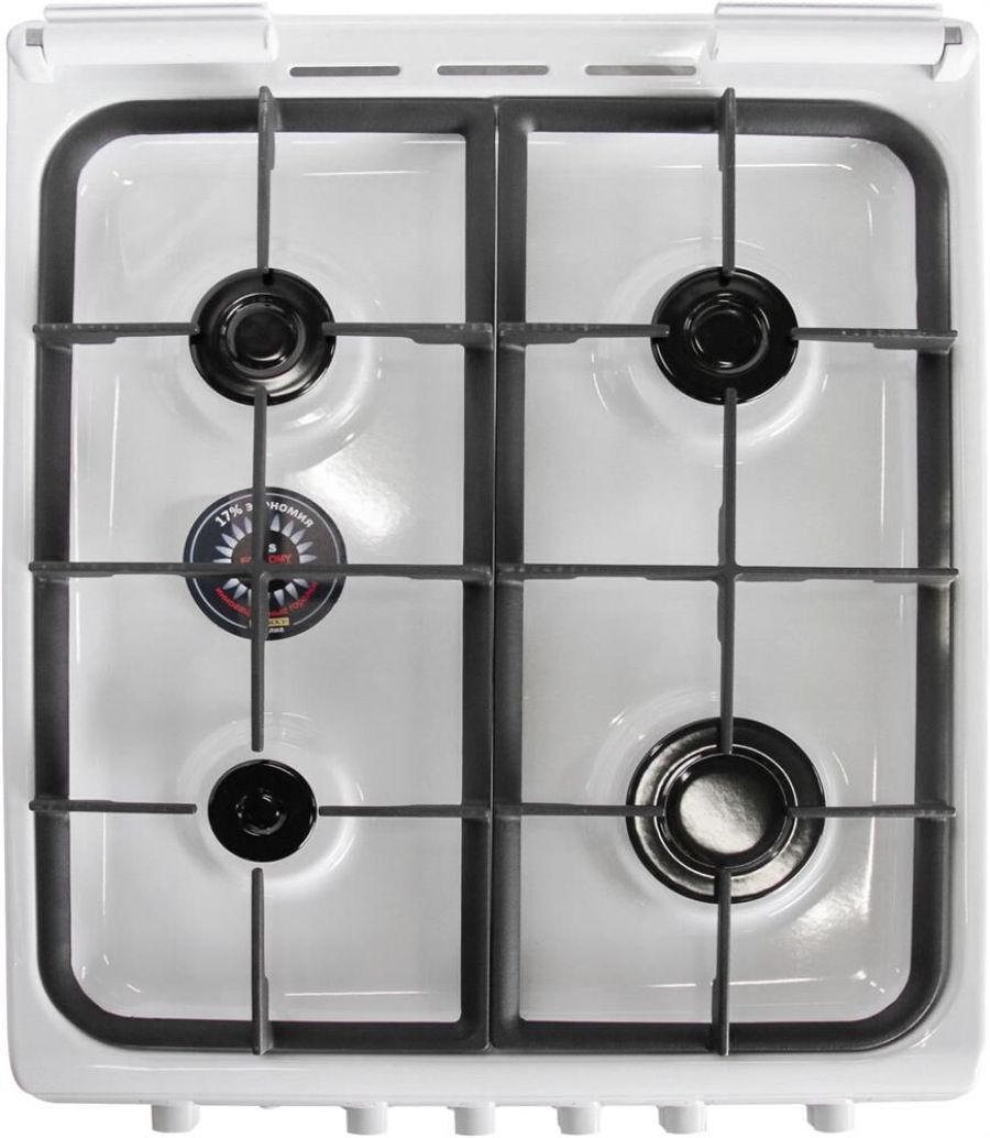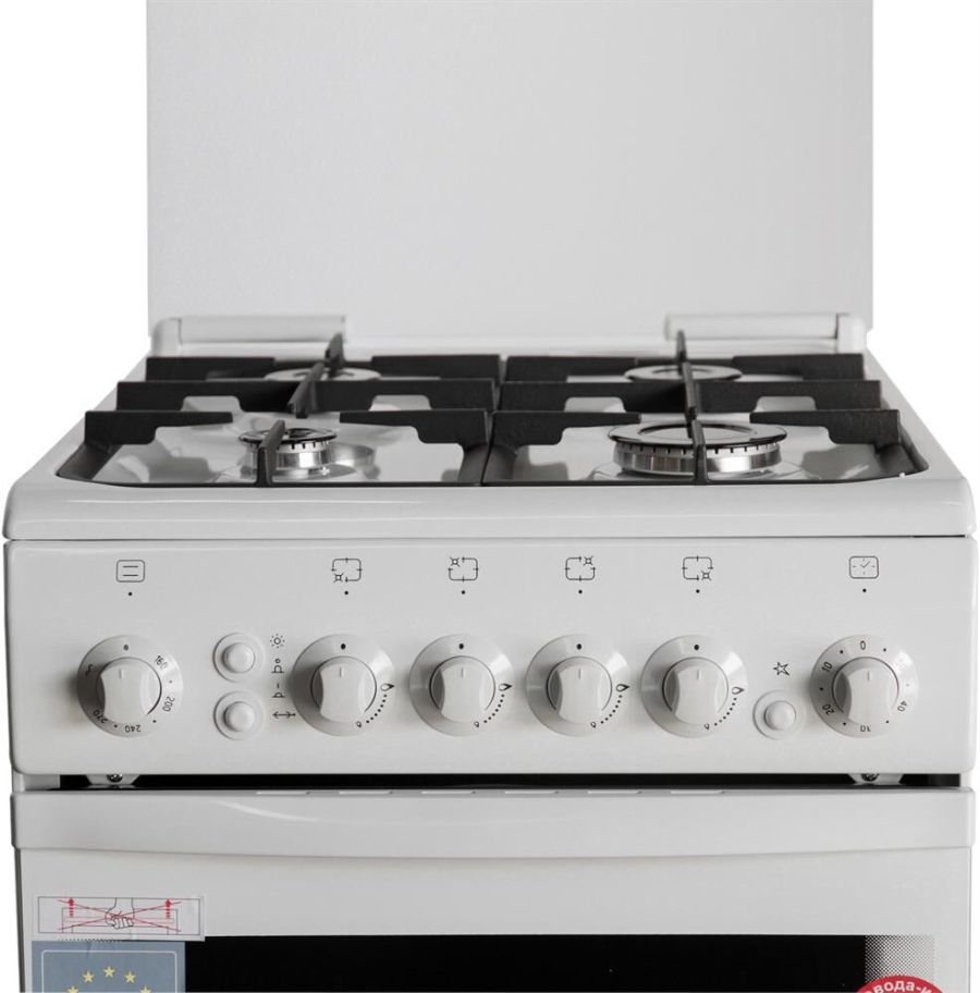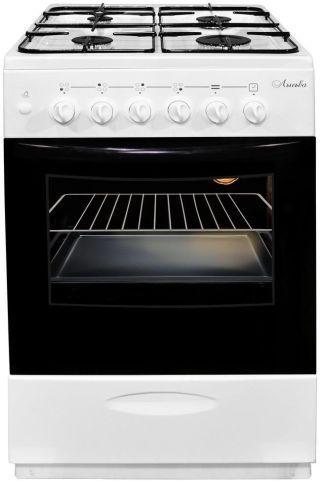 Габариты 850*500*600 Вес, кг - 38 Объём духовки 54 л Основные характеристики варочной поверхности: Электроподжиг 4 газовые конфорки 1,0/1,7/1,7/3,0 кВт Основные характеристики духового шкафа: Электророзжиг Газ-контроль Терморегулятор Освещение Вертел Гриль Механический таймер. Комплектация: Большой противень Малый противень Решётка для жарки Чугунная решётка Стеклянная крышка рабочего стола Хозяйственный отсек Техническое описание: Цвет - белый