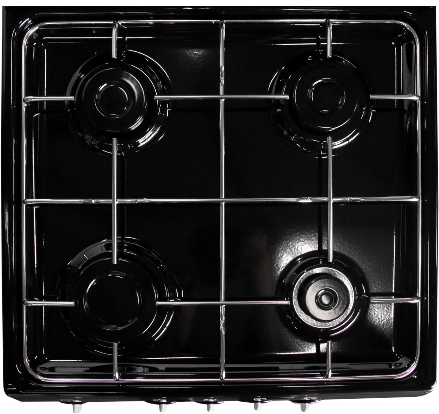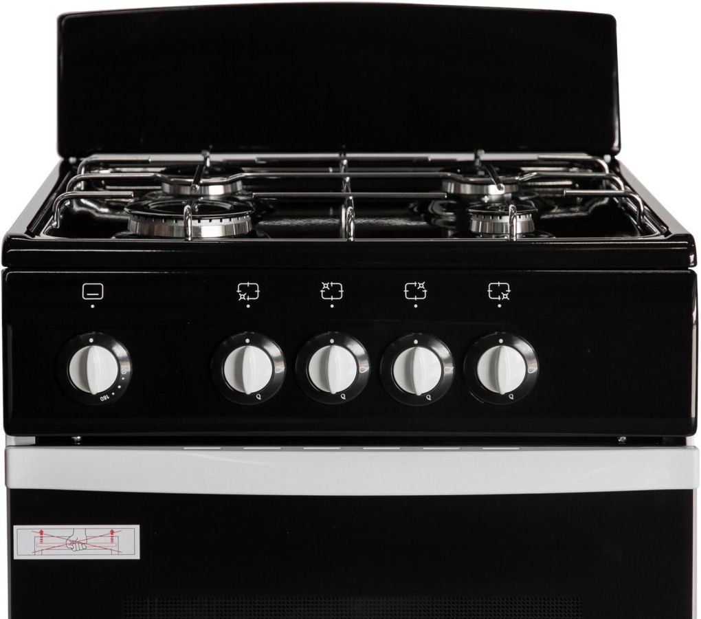 Габариты 850*500*500 Вес, кг - 32 Основные характеристики варочной поверхности: 4 газовые конфорки 1,0/1,75/1,75/3,0 кВт Основные характеристики духового шкафа: Газ-контроль Объём духовки 43 л. Комплектация: Малый противень Металлический щиток рабочего стола Хозяйственный отсек Никелированная решётка рабочего стола Техническое описание: Цвет - черный