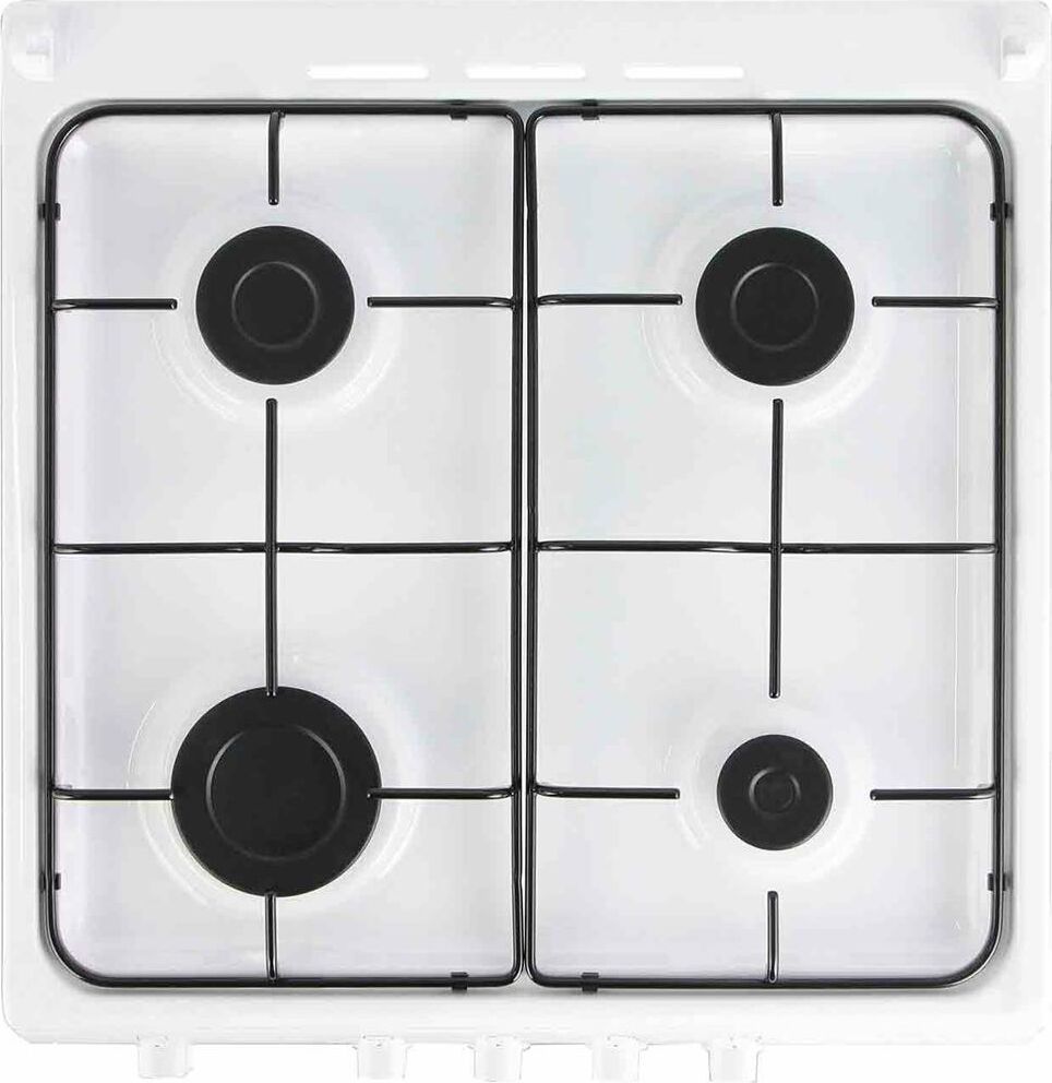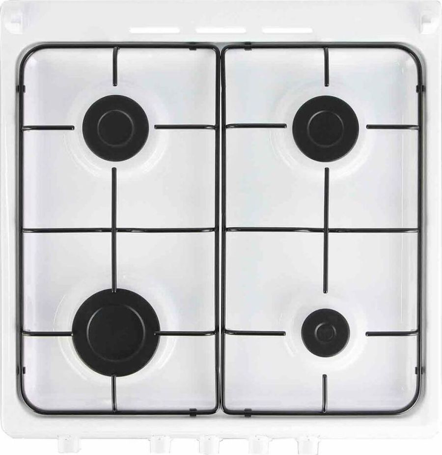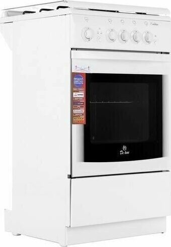 Габариты 850*500*500 Вес, кг - 36 Основные характеристики варочной поверхности: Электророзжиг 4 газовые конфорки 1,0/1,75/1,75/3,0 кВт Основные характеристики духового шкафа: Газ-контроль Освещение Объём духовки 43 л. Комплектация: Противень Решётка для жарки Эмалированная решётка Стеклянная крышка рабочего стола Хозяйственный отсек Техническое описание: Цвет - белый