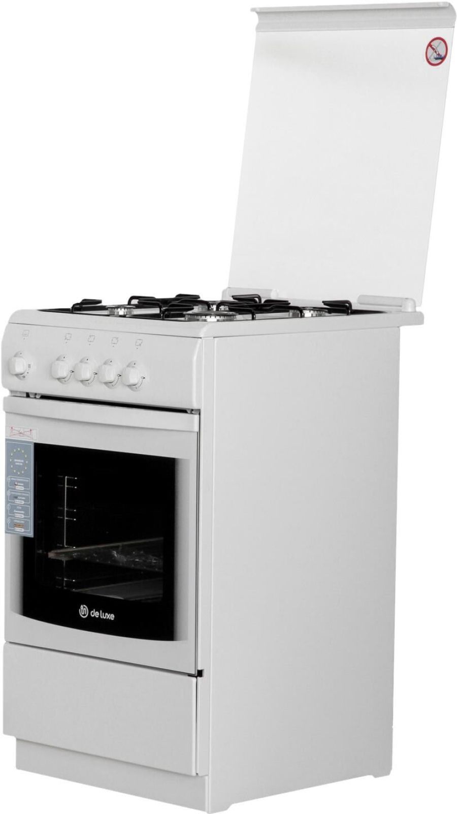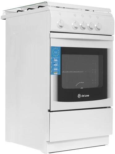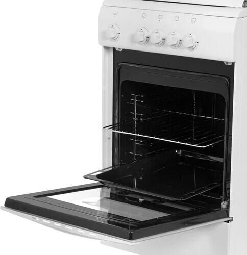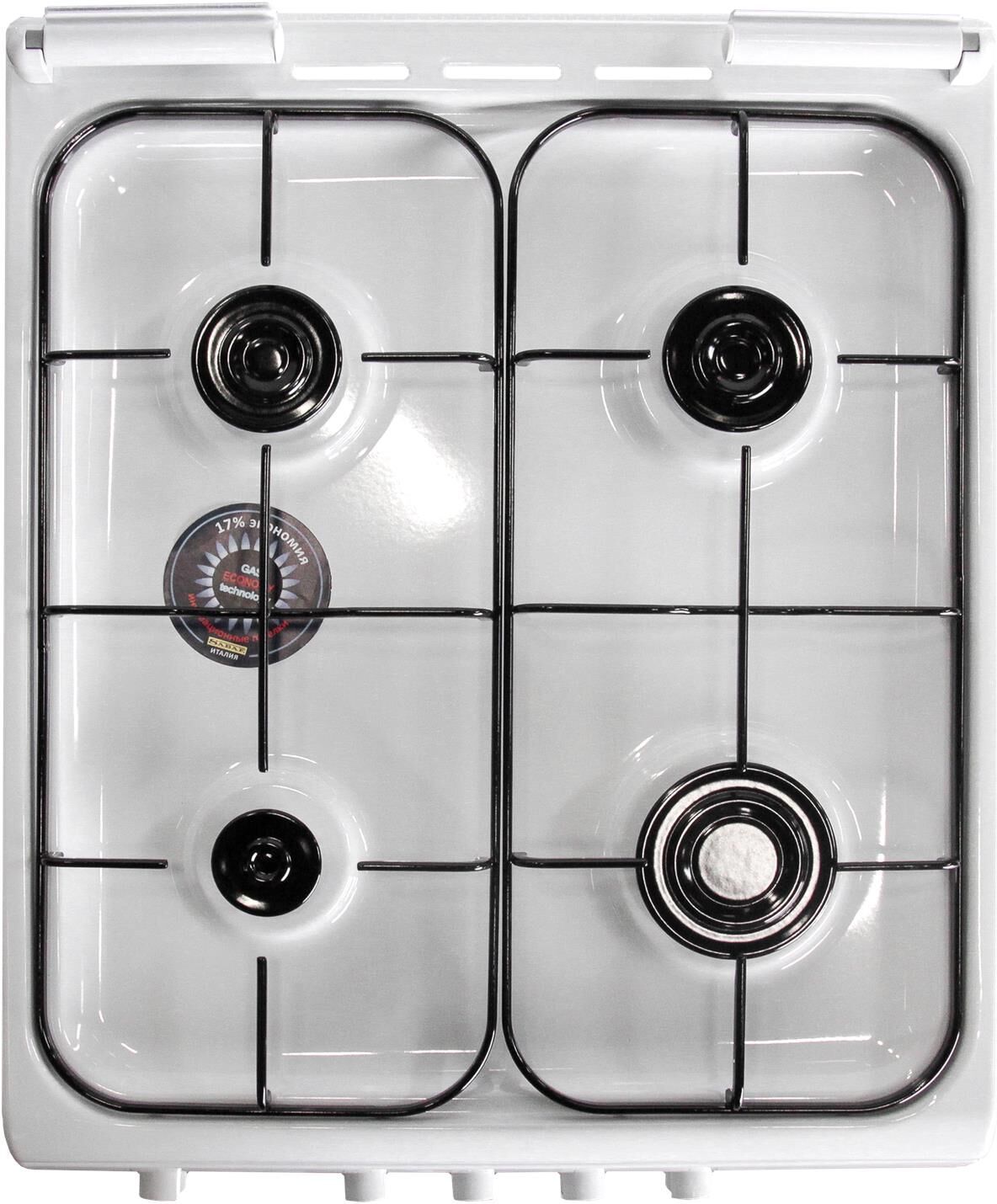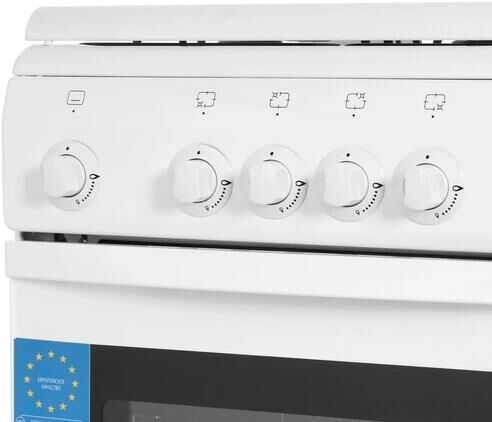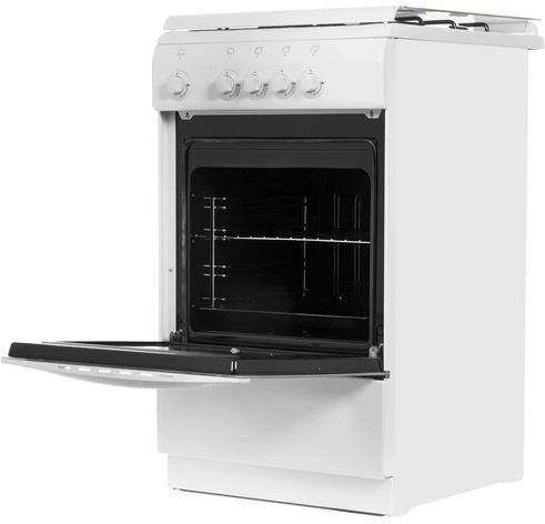Габариты 850*500*600 Вес, кг – 35 Объём духовки 60 л. Основные характеристики варочной поверхности: 4 газовые конфорки 1,0/1,7/1,7/3,0 кВт Основные характеристики духового шкафа: Газ-контроль Комплектация: Большой противень Малый противень Решётка для жарки Эмалированная решётка Стеклянная крышка рабочего стола Хозяйственный отсек Техническое описание: Цвет - белый