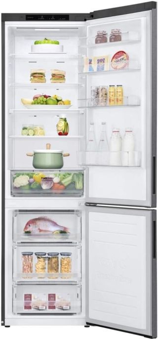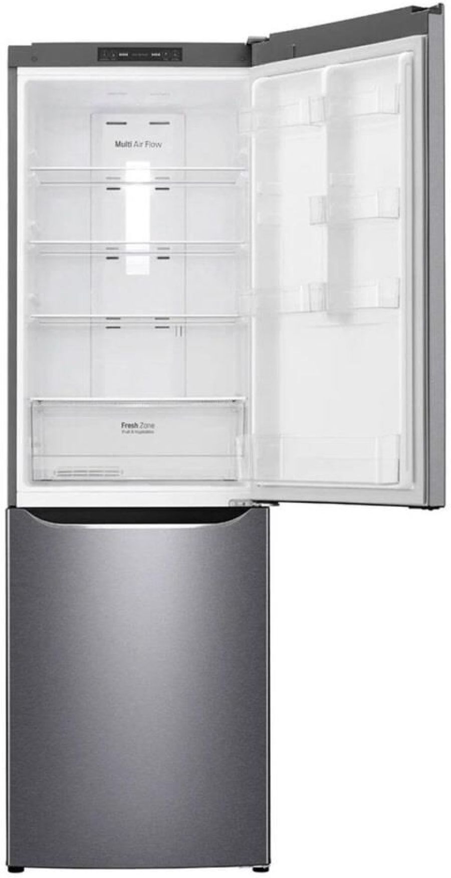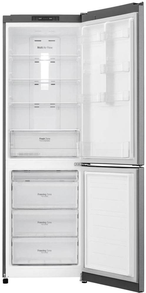 Габариты (ВхШхГ) 190,7х59,5х65,5см. No Frost. 2-камерный, морозилка внизу. Умный Инверторный компрессор. Класс А+. Общий объем 302л. (223/79). Материал полок стекло. Экспресс-заморозка. Блокировка дисплея. Время хранения продуктов при отключении энергопитания (ч) 16. Мощность замораживания (кг/сут) 9,3. Цвет Темный графит