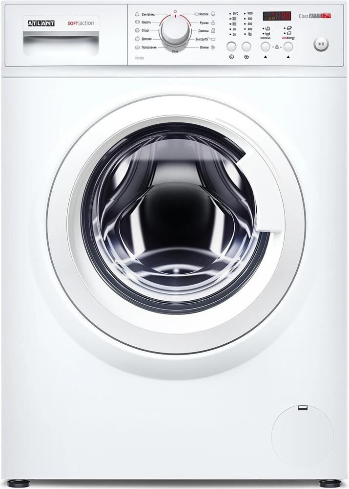 Габариты (ВхШхГ), 846х596х482мм. Вес 64 кг Тип загрузки фронтальная Диаметр загрузочного отверстия 340 мм Максимальная загрузка сухого белья 7 кг Тип управления электронное Максимальная скорость отжима 1000 об/мин Цвет корпуса белый Класс энергоэффективности A+++ Класс стирки A Класс отжима C Количество программ 11 шт Количество дополнительных функций 7 шт Тип мотора коллекторный Тип кнопок механические Дисплей Самодиагностика Звуковой сигнал Уровень шума при стирке 59 дБ Уровень шума при отжиме 73 дБ Материал бака Полипропилен Материал барабана Нержавеющая сталь Предварительная стирка Дополнительное полоскание Добавление воды на всех этапах стирки Защита от детей Выбор скорости отжима Выбор температуры стирки Интенсивная стирка Блокировка двери от открывания Охлаждение воды перед сливом Контроль уровня пены Система защиты от протечек AQUA-PROTECT Защита от включения при ошибочном нажатии кнопок (защита от детей) Защита от перепадов напряжения в электросети