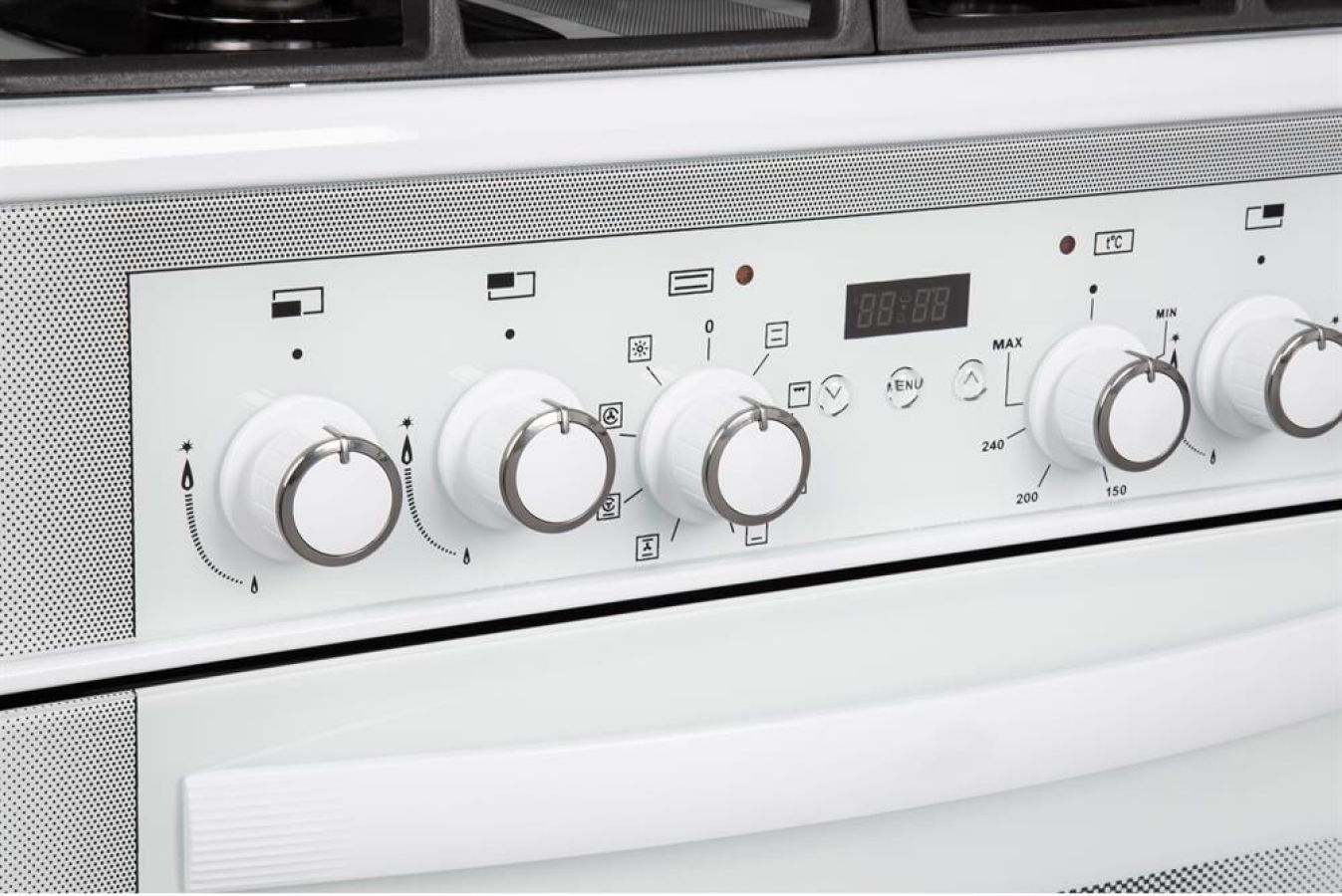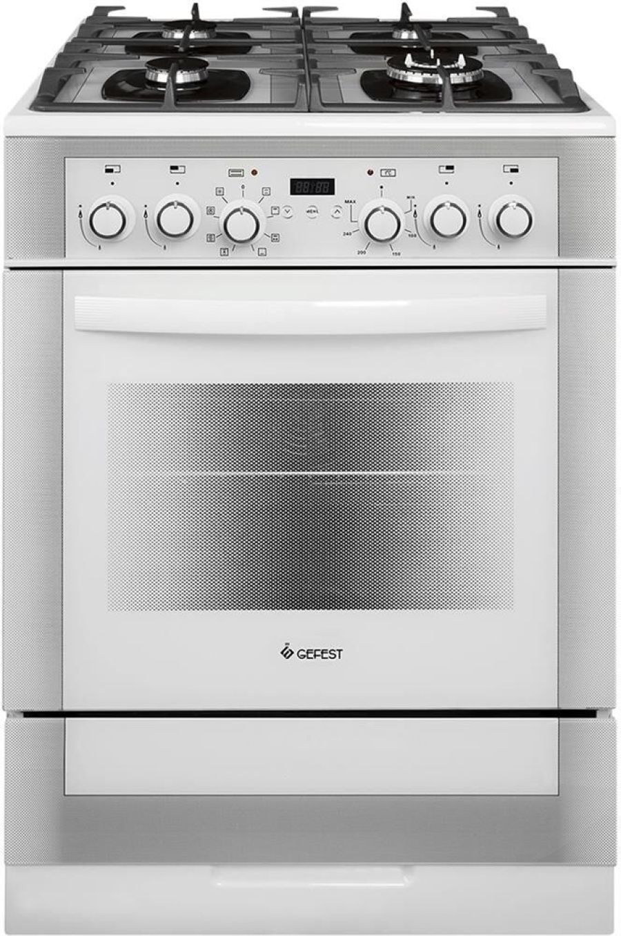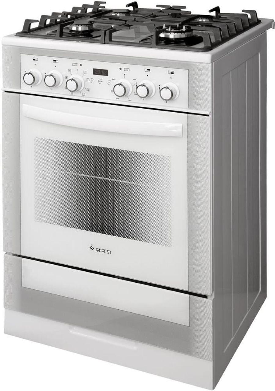 Габаритные размеры ШхГхВ: 60х60х85 см * Цвет: белый. Варочная поверхность: стеклянная. * Объём духовки: 55 л * Вертел с электроприводом * Съемные проволочные направляющие духовки * Выдвижной ящик для посуды и принадлежностей * Таймер сенсорный * Газ-контроль горелок стола * Терморегулятор (термостат) * Гриль электрический * Ускоренный нагрев с конвекцией * Двухзонная горелка * Чугунные решетки горелок стола * Ножки регулировочные * Шашлычница * Подсветка духовки двойная * Электророзжиг горелок, встроенный в ручки