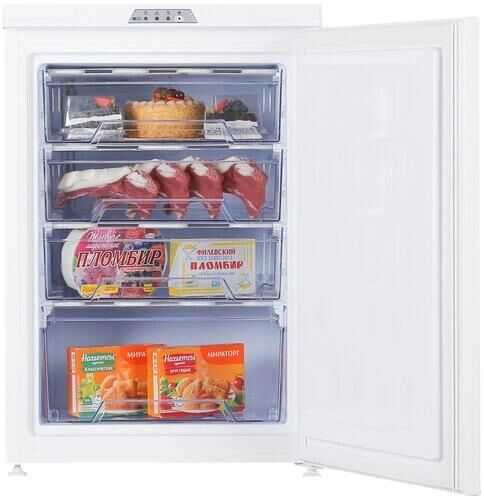 Габариты (ВхШхГ): 85х58x61см; Вес: 37кг; Объем: 110л; Класс энергетической эффективности: А; Климатический класс: N; Управление: электромеханическое; Размораживание морозильной камеры: ручное; Номинальная частота, Гц: 50; Потребление энергии: 239 кВт/год; Производительность замораживания, кг/сут: не менее 14; Перевешиваемые двери; Цвет: Белый