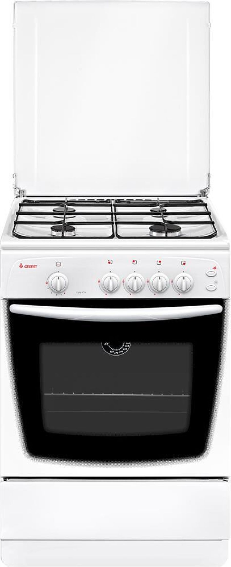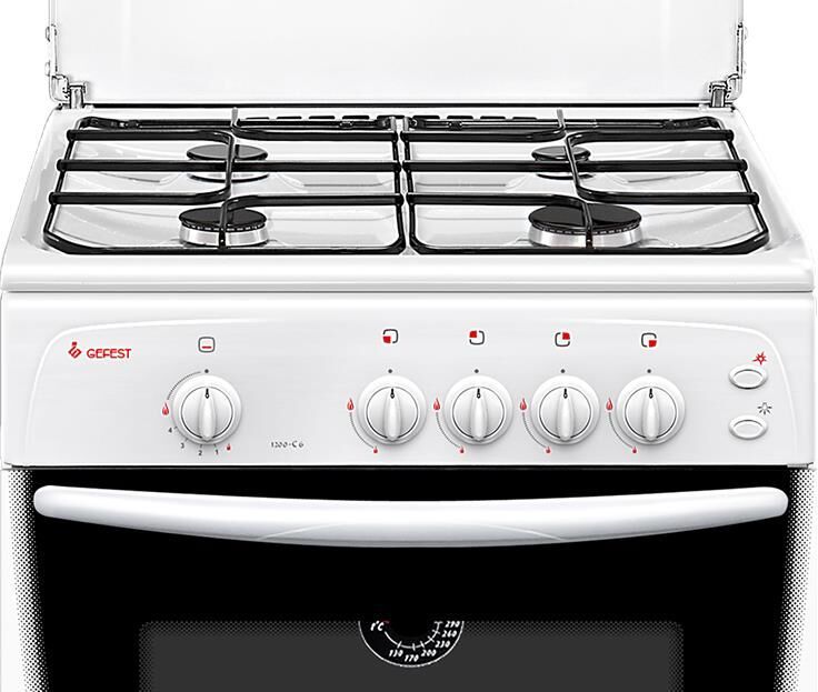 Газовая плита. Цвет: белый. Варочная поверхность: эмалированная. Габаритные размеры ШхГхВ: 60х60х85 см. Полезный объём духовки: 63 л. Выдвижной ящик для посуды и принадлежностей. Стальные решетки горелок стола. Газ-контроль горелок стола. Термоуказатель духовки. Газ-контроль духовки. Штампованные направляющие духовки. Ножки регулировочные. Электророзжиг горелок, кнопка розжига на панели. Подсветка духовки одинарная. Количество зон приготовления: 4. Диапазон номинальных напряжений, В: 220-230. Металлическая крышка. Класс электробезопасности: II.