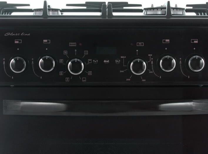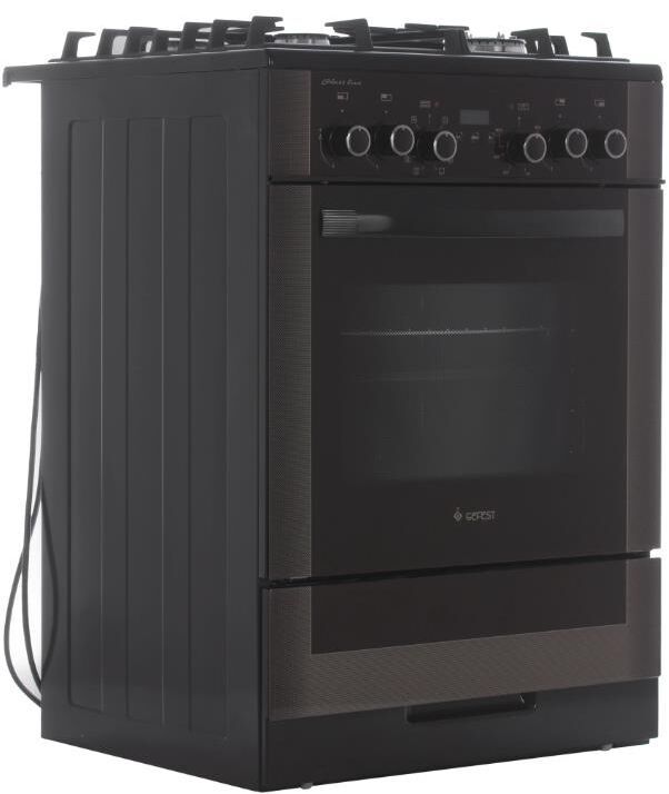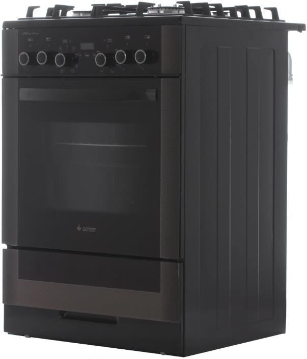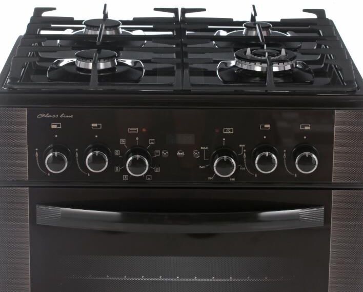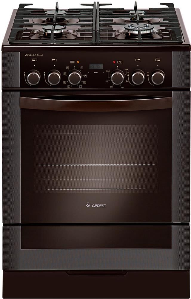Габариты, ШхГхВ, см: 60x60x85; Цвет: коричневый; Дизайн: классический; Ширина, см: 60; Фасад: закаленное стекло; Варочная поверхность: закаленное стекло; Решетки стола: чугунные; Присоединительная резьба газопровода: G 1/2; Класс энергоэффективности: A; Номинальная потребляемая мощность электроэнергии, кВт: 3,0-3,28; Тип духовки: электрическая; Мощность верхнего ТЭН духовки, кВт: 0,8; Мощность нижнего ТЭН духовки, кВт: 1,2; Мощность ТЭН вентилятора, кВт: 2,0; ТЭН-гриль: 1,2; Объем духовки, л: 55; Таймер: сенсорный; Двухзонная горелка; Газ-контроль горелок стола; Электророзжиг горелок стола: встроен в ручки; Гриль: электрический; Вертел с электроприводом; Шашлычница; Конвекция; Подсветка духовки: двойная; Направляющие духовки: съемные проволочные; Терморегулятор (термостат); Ящик для посуды и принадлежностей: выдвижной ящик; Ножки регулировочные; Сетевой шнур и вилка: в наличии; Комплектность: жаровня, накладка для посуды малого диаметра, комплект сменных сопел, решетка духовки