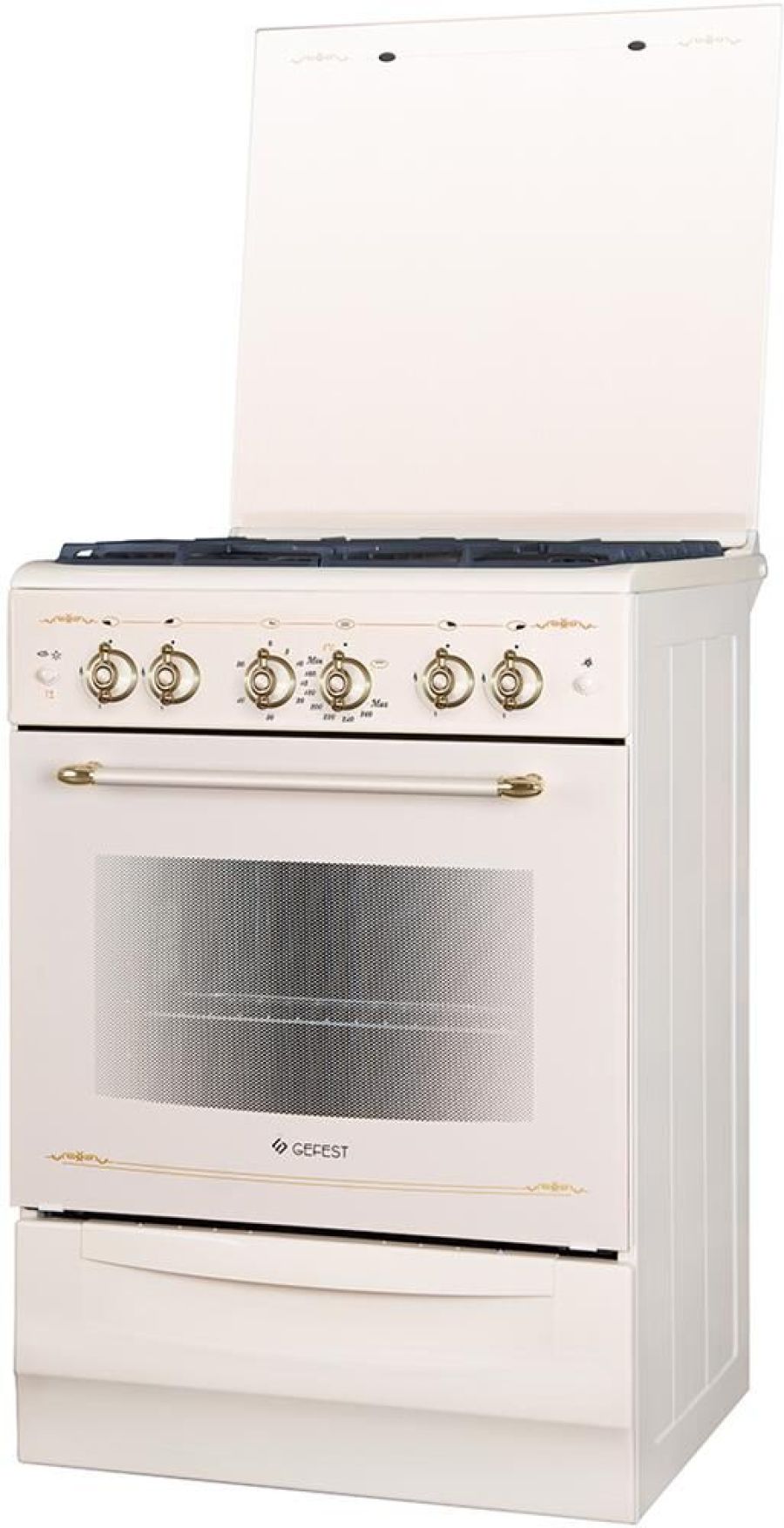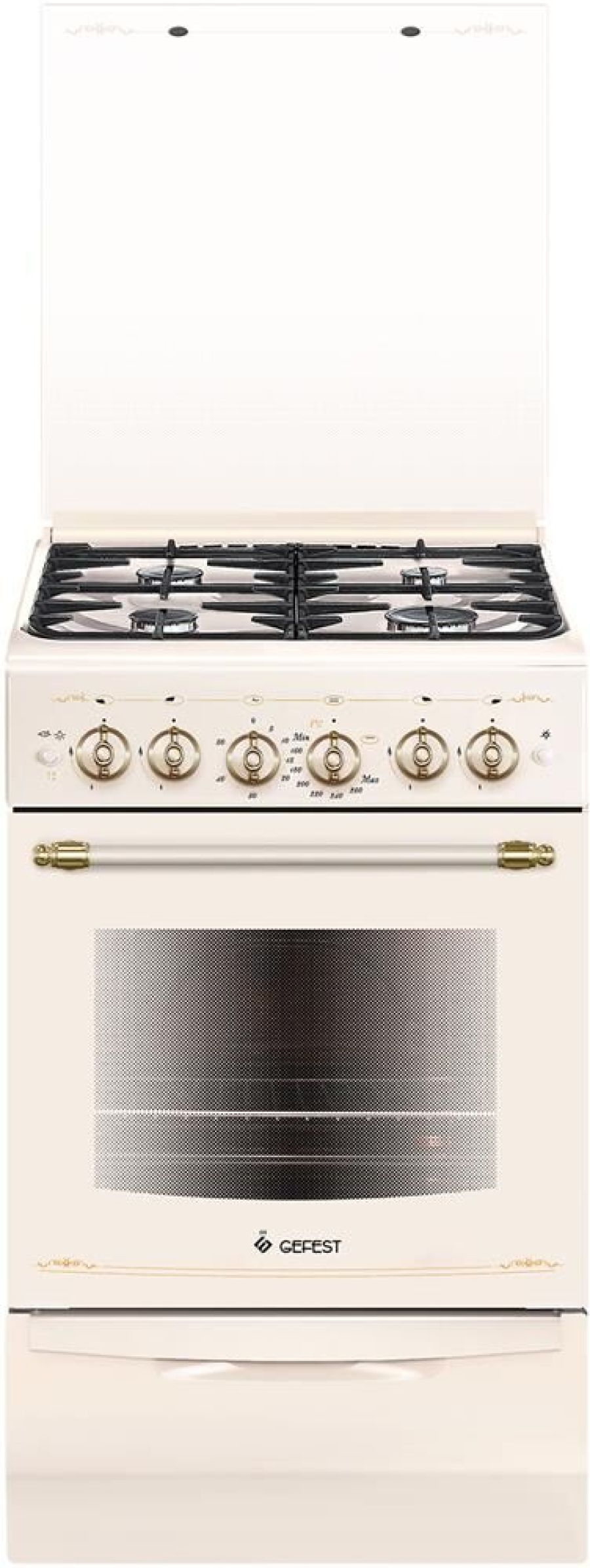 Габаритные размеры ШхГхВ: 50х58.5х85 см Полезный объём духовки: 52 л Выдвижной ящик Таймер механический Газ-контроль духовки Терморегулятор (термостат) Гриль Ножки регулировочные Электророзжиг горелок, кнопка розжига на панели Подсветка духовки одинарная Электророзжиг духовки, Проволочные направляющие