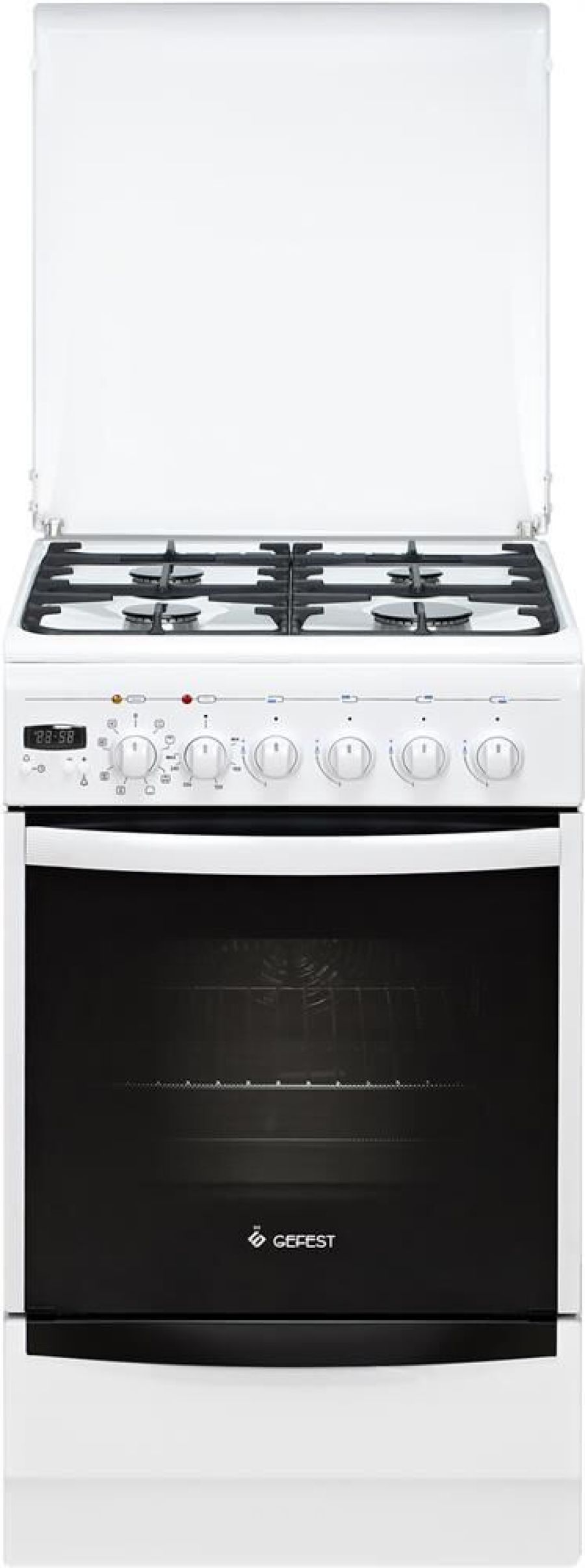 Габариты, ШхГхВ, см: 50x58.5x85; Цвет: белый; Дизайн: классический; Ширина, см: 50; Фасад: эмалированный; Варочная поверхность: эмалированная; Решетки стола: чугунные; Крышка стола: металлическая; Присоединительная резьба газопровода: G 1/2; Класс энергоэффективности: A; Номинальная потребляемая мощность электроэнергии, кВт: 2,97-3,25; Тип духовки: электрическая; Мощность верхнего ТЭН духовки, кВт: 0,8; Мощность нижнего ТЭН духовки, кВт: 1,2; Мощность ТЭН вентилятора, кВт: 2,0; ТЭН-гриль: 1,2; Объем духовки, л: 55; Таймер: электромеханический; Газ-контроль горелок стола; Электророзжиг горелок стола: встроен в ручки; Гриль: электрический; Вертел с электроприводом; Шашлычница; Конвекция; Подсветка духовки: одинарная; Направляющие духовки: съемные проволочные; Терморегулятор (термостат); Ящик для посуды и принадлежностей: выдвижной ящик; Ножки регулировочные; Сетевой шнур и вилка: в наличии