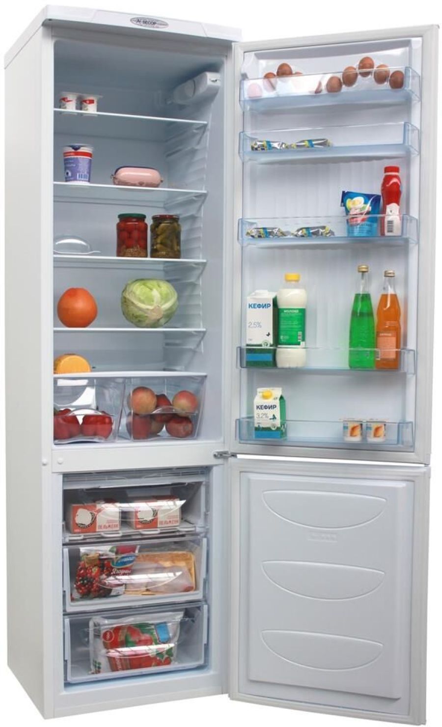 Габариты (ВхШхГ)196х58х61см. 2-камерный, морозилка внизу. Объем 360л. (259/101) Управл-е электромеханическое. 1 компрессор. Размораж-е морозильной камеры ручное. Размораж-е холодильной камеры капельная система. Класс энергетической эффективности А+ Климатический класс ST LED освещение Перевешиваемые двери Цвет белый.