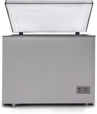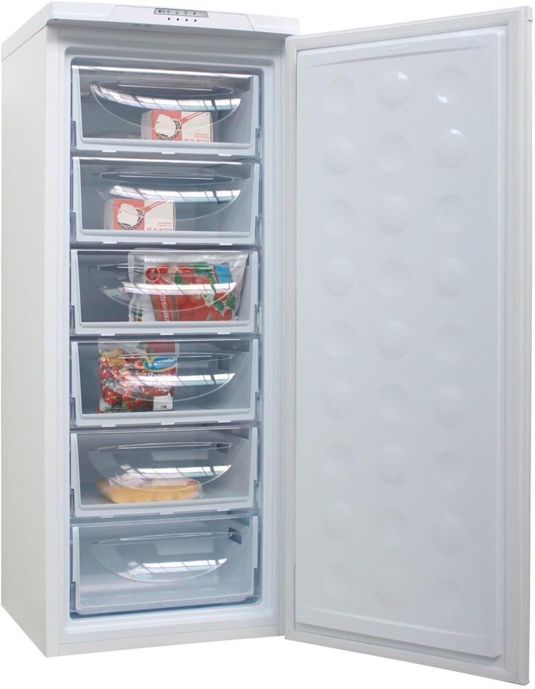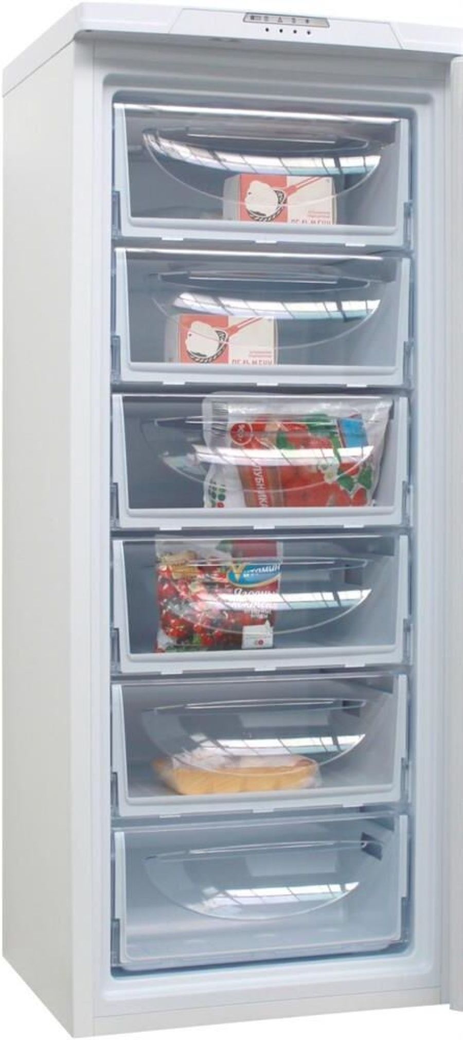 Габариты (ВхШхГ): 142х57,4х61см; Объем: 220л; Вес: 50кг; Однокамерный морозильник на 6 ящиков; Управление: электромеханическое; Размораживание морозильной камеры: ручное; Производительность замораживания, кг/сут: не менее 14; Класс энергетической эффективности: А; Климатический класс: N; Потребление энергии: 305 кВт/год; Перевешиваемые двери; Цвет: белый