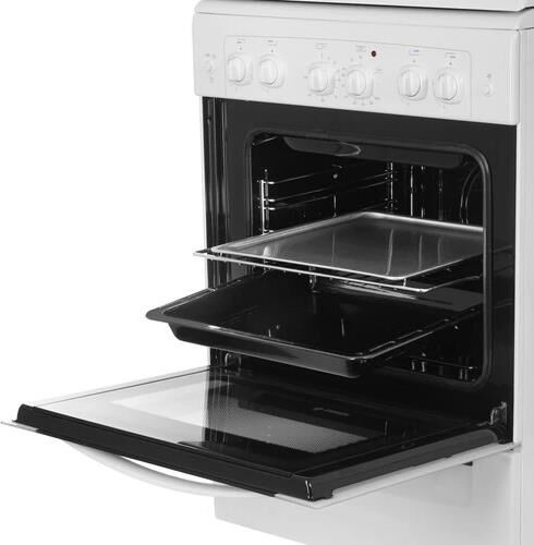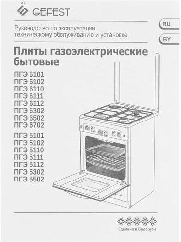 (ШхГхВ) 60х60х85см. 4 газ. горелки. Электроподжиг горелок. Духовка газоэлектрическая, объем 52л. Газ-контроль духовки. Электророзжиг горелок стола/духовки, кнопка на парели. Терморегулятор. Вертел с электроприводом. Таймер механич. Цвет белый.