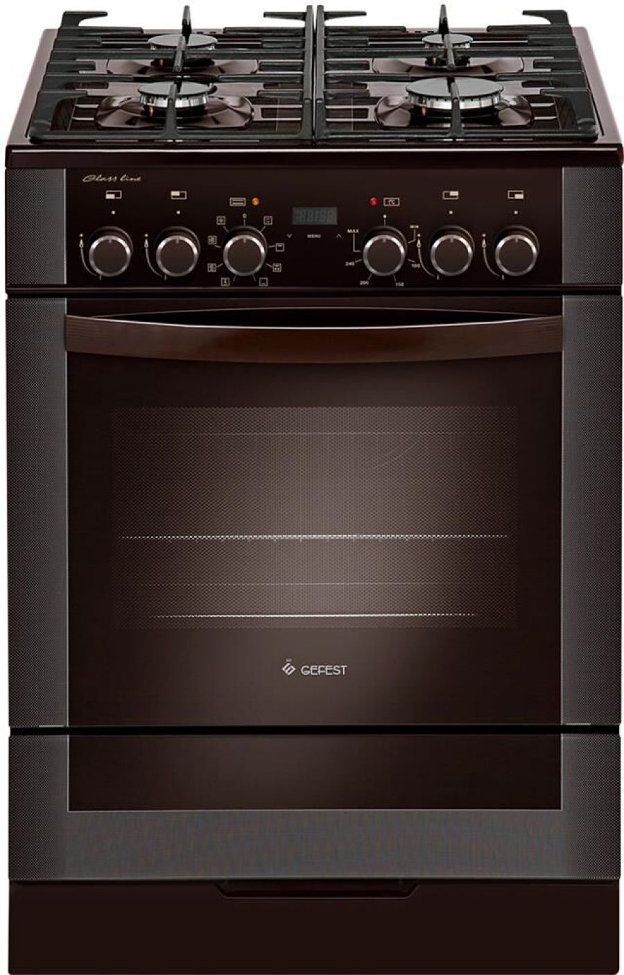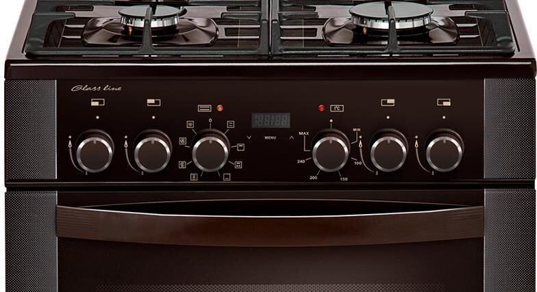 Газоэлектрическая плита. Габаритные размеры ШхГхВ: 60х60х85 см. Цвет: коричневый. Варочная поверхность: стеклянная. Объём духовки: 55 л.Вертел с электроприводом. Таймер сенсорный. Выдвижной ящик для посуды и принадлежностей. Терморегулятор (термостат). Газ-контроль горелок стола. Ускоренный нагрев с конвекцией. Гриль электрический. Чугунные решетки горелок стола. Ножки регулировочные. Шашлычница. Подсветка духовки двойная. Электророзжиг горелок, встроенный в ручки. Съемные проволочные направляющие духовки.
