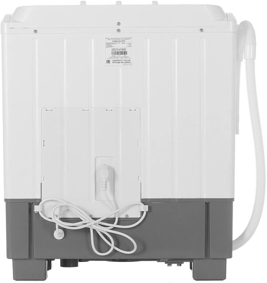 (ВхШхГ) 69,5х36х60см. Цвет белый.Загрузка сухого белья в бак стирки, до (кг): 4 Загрузка белья в бак отжима, до (кг): 3,5.Максимальная потребляемая мощность (Вт): 360.Сливной насос.Реверс.Вес, кг: 12,7.Количество программ стирки 2. Таймер стирки (мин)15.Таймер отжима (мин) 5.Активатор нового поколения. Двигатель повышенной мощности.Материал корпуса полипропилен.Класс безопасности IP54.Безопасная система отжима.Скорость отжима (об/мин) 1350. Режим работы: Обычная стирка, Бережная стирка, Слив.
