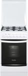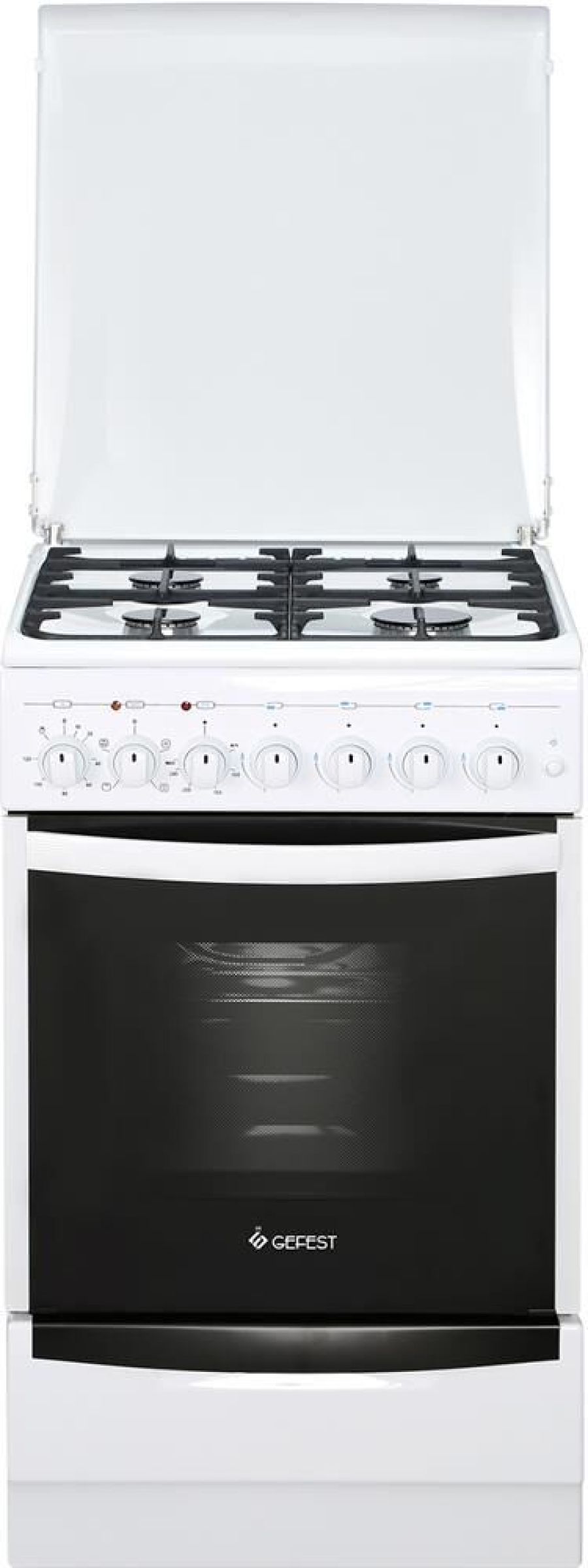 Габариты, ШхГхВ, см: 50x58.5x85; Цвет: белый; Дизайн: классический; Ширина, см: 50; Тип духовки: электрическая; Мощность верхнего ТЭН духовки, кВт: 0,8; Мощность нижнего ТЭН духовки, кВт: 1,2; Объем духовки, л: 55; Фасад: эмалированный; Варочная поверхность: эмалированная; Решетки стола: чугунные; Крышка стола: металлическая; Присоединительная резьба газопровода: G 1/2; Класс энергоэффективности: A; Номинальная потребляемая мощность электроэнергии, кВт: 1,84-2,02; Таймер: электромеханический; Электророзжиг горелок стола: кнопка на панели; Гриль: электрический; Вертел с электроприводом; Подсветка духовки: одинарная; Направляющие духовки: съемные проволочные; Терморегулятор (термостат); Ящик для посуды и принадлежностей: выдвижной ящик; Ножки регулировочные; Сетевой шнур и вилка: в наличии; Комплектность: жаровня, комплект сменных сопел