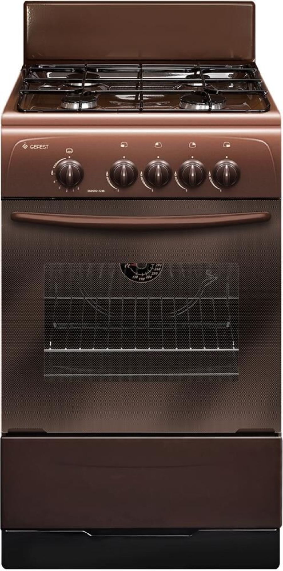 Габариты ШхГхВ: 50х53х85 см; Ширина, см: 50; Цвет: коричневый; Газ-контроль духовки; Объем духовки, л: 42; Мощность горелки духовки, кВт: 2,7; Дизайн: классик; Фасад: эмалированный; Варочная поверхность: эмалированная; Решетки стола: стальные; Крышка стола: щиток; Класс электробезопасности: II; Направляющие духовки: штампованные; Термоуказатель духовки; Ящик для посуды и принадлежностей: откидная крышка; Комплектность: жаровня, противень, решетка духовки