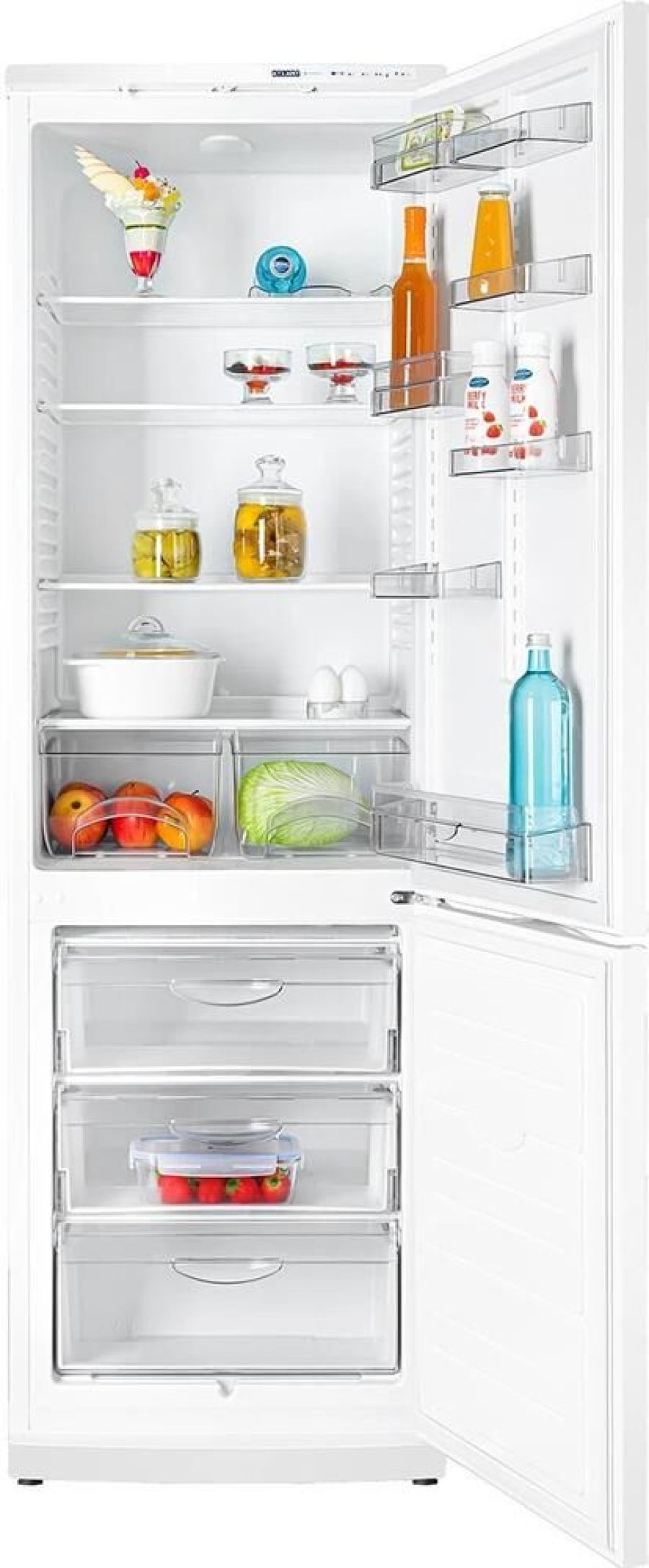 Габариты (ШxГxВ) 60x63x195 см. Цвет / Материал покрытия белый / пластик/металл. Общий объем 367 л. Объем холодильной камеры 252 л. Объем морозильной камеры 115 л. Размораживание морозильной камеры ручное. Размораживание холодильной камеры капельная система. Автономное сохранение холода до 17 ч. Мощность замораживания до 15 кг/cутки. Индикация открытой двери – звуковая. Возможность перевешивания двери. Климатический класс SN, ST. Вес 74 кг. Двухкомпрессорный холодильник с электронным блоком управления и классом энергоэффективности А отличается строгими, лаконичными и простыми формами. Стиль внутреннего дизайна, наоборот, определяют плавные линии и округлые формы. Глубокие барьеры-полки, большие сосуды для овощей или фруктов, пластмассовые корзины морозильной камеры, эффектный прозрачный пластик. Новые функциональные возможности — режимы «Суперохлаждение» и «Отпуск».