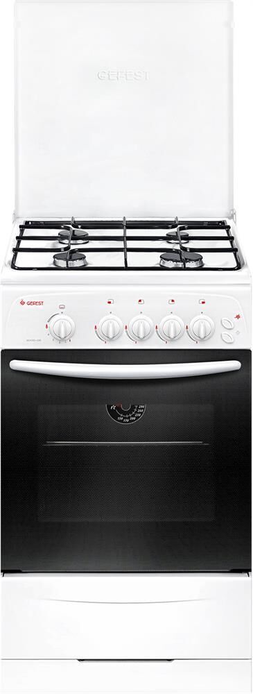 Габариты 50х57х85см; Цвет: белый; Объем духовки, л: 42; Количество зон приготовления: 4; Варочная поверхность: эмалированная; Фасад: эмалированный; Крышка: металлическая; Класс электробезопасности: II; Выдвижной ящик для посуды и принадлежностей; Стальные решетки горелок стола; Газ-контроль духовки; Термоуказатель духовки; Ножки регулировочные; Штампованные направляющие духовки; Подсветка духовки: одинарная; Электророзжиг горелок, кнопка розжига на панели