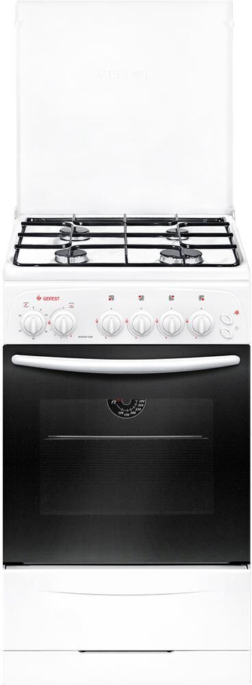 Габариты: 50х57х85см; Цвет: белый; Объем духовки, л: 42; Количество зон приготовления: 4; Варочная поверхность: эмалированная; Фасад: эмалированный; Крышка: металлическая; Класс электробезопасности: II; Выдвижной ящик для посуды и принадлежностей; Таймер механический; Газ-контроль духовки; Термоуказатель духовки; Ножки регулировочные; Штампованные направляющие духовки; Подсветка духовки одинарная; Электророзжиг горелок, кнопка розжига на панели; Стальные решетки горелок стола