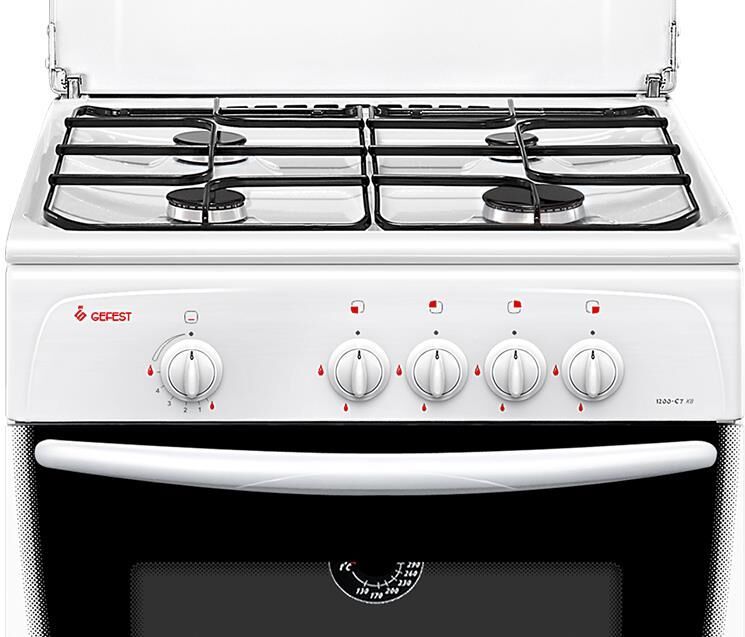 Габариты (ШхГхВ): 60x60x85см; Цвет: белый; Объем духовки, л: 63 Количество зон приготовления: 4; Варочная поверхность: эмалированная; Фасад: эмалированный; Крышка: металлическая; Класс электробезопасности: II; Газ-контроль духовки; Штампованные направляющие духовки; Стальные решетки горелок стола; Ящик для посуды и принадлежностей с откидной крышкой; Термоуказатель духовки
