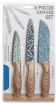 Набор ножей в ножнах Окрашенное лезвие (дизайн в ассортименте) Пластиковая рукоятка soft-touch (дизайн под дерево) Покрытие лезвия non-stick 3 шт в наборе: - Овощной, длина 8,5 см - Универсальный, длина 12,5 см - Сантоку (мини), длина 12,7 см Можно мыть в посудомоечной машине Материал: нержавеющая сталь с покрытием non-stick (2CR14), полипропилен, ТПР