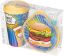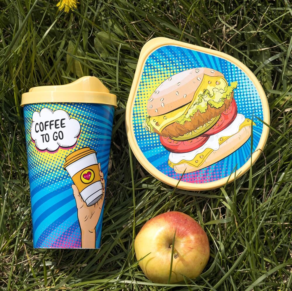 Оптимальный набор посуды IZI-GO в милой и привлекательной упаковке порадует глаз. В набор посуды входят стакан 550 мл и контейнер 400 мл. Стаканы 550 мл с крышкой имеют комфортный диаметр корпуса, удобно ложатся в руку и подходят к подстаканникам в машине. Крышка с носиком имеет язычок для удобного открывания. Контейнер необычной каплеобразной формы имеет приятную бархатистую поверхность снаружи и удобную для мытья глянцевую плоскость внутри. Плотная гибкая крышка контейнера сохранит перекус сочным и аппетитным. Посуда декорируется с помощью технологии IML: этикетка вплавляется в изделие на этапе литья. Благодаря этому декор не стирается и долго радует глаз. Посуда производится из безопасного полипропилена, не содержит бисфенола А и подходит для горячей и холодной пищи. Комплект легкий и подходит для того, чтобы брать с собой.