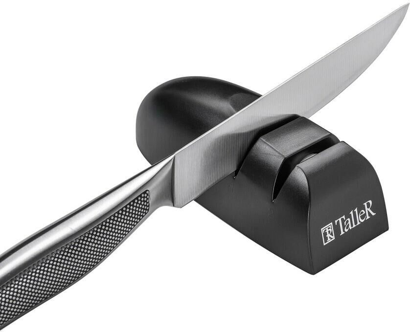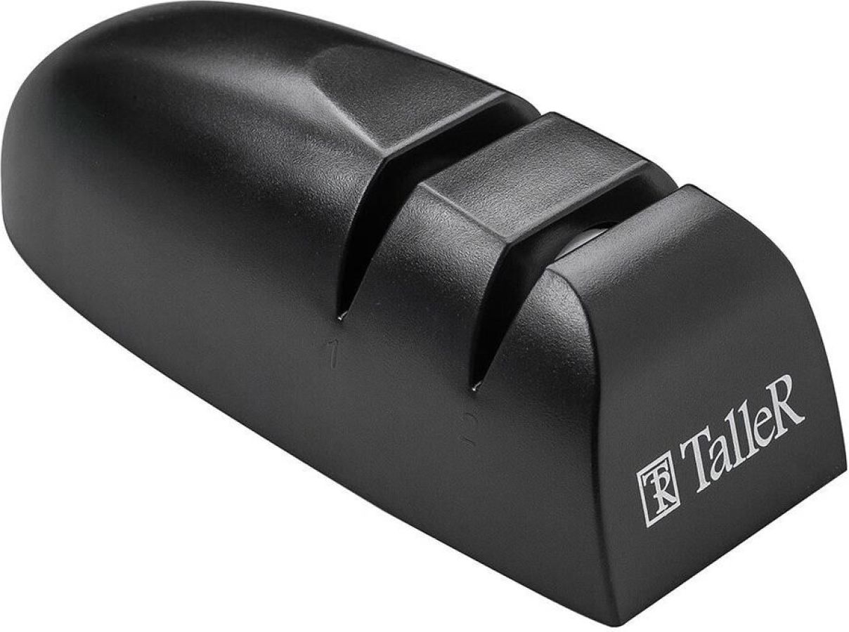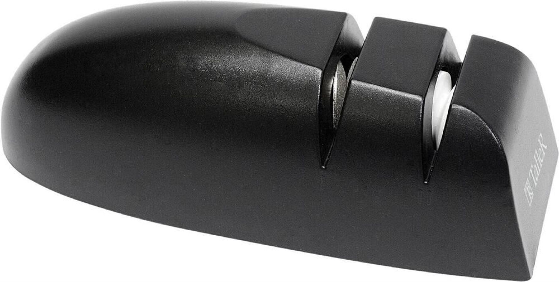 Точилка для ножей "Хардинг", • Размер: 13,1*5,1*4,5 см • 2-х ступенчатая заточка • Угол заточки: 20º • Материал: сталь, керамика, пластик, рифленое основание • Шлифовальный модуль из стали, модуль доводки из керамики • Белое лого