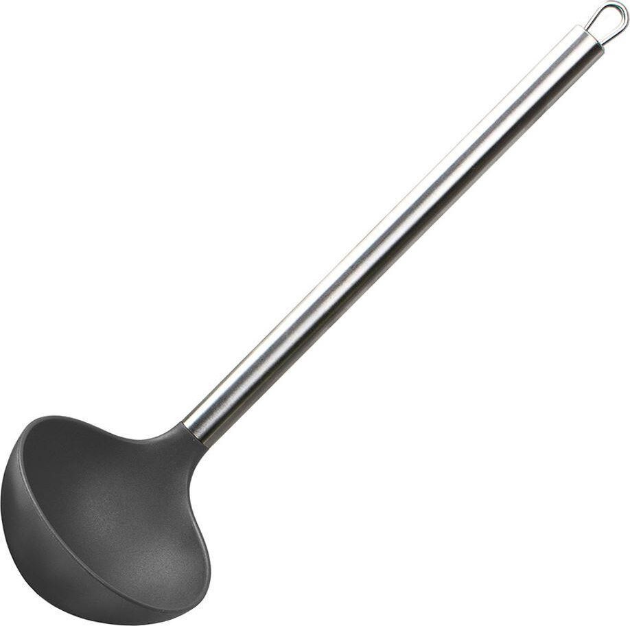 Половник Материал: нейлон, нержавеющая сталь В ручках предусмотрены отверстия для подвешивания Можно мыть в посудомоечной машине при температуре не более 210°; не рекомендуется оставлять на раскаленной поверхности. Объем рабочей части 130 мл Упаковка -