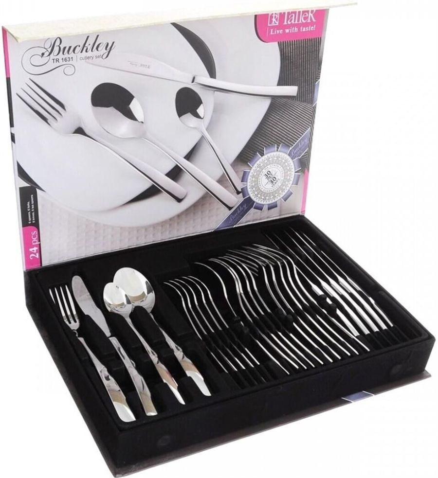 Столовый набор Бакли, 24 предмета 6 ложек столовых, 6 ложек чайных, 6 вилок, 6 ножей Столовые предметы (кроме ножей) изготовлены из высококачественной нержавеющей стали марки 18/10 Ножи выполнены из высококачественной легированной стали марки 420S37 (2Cr1