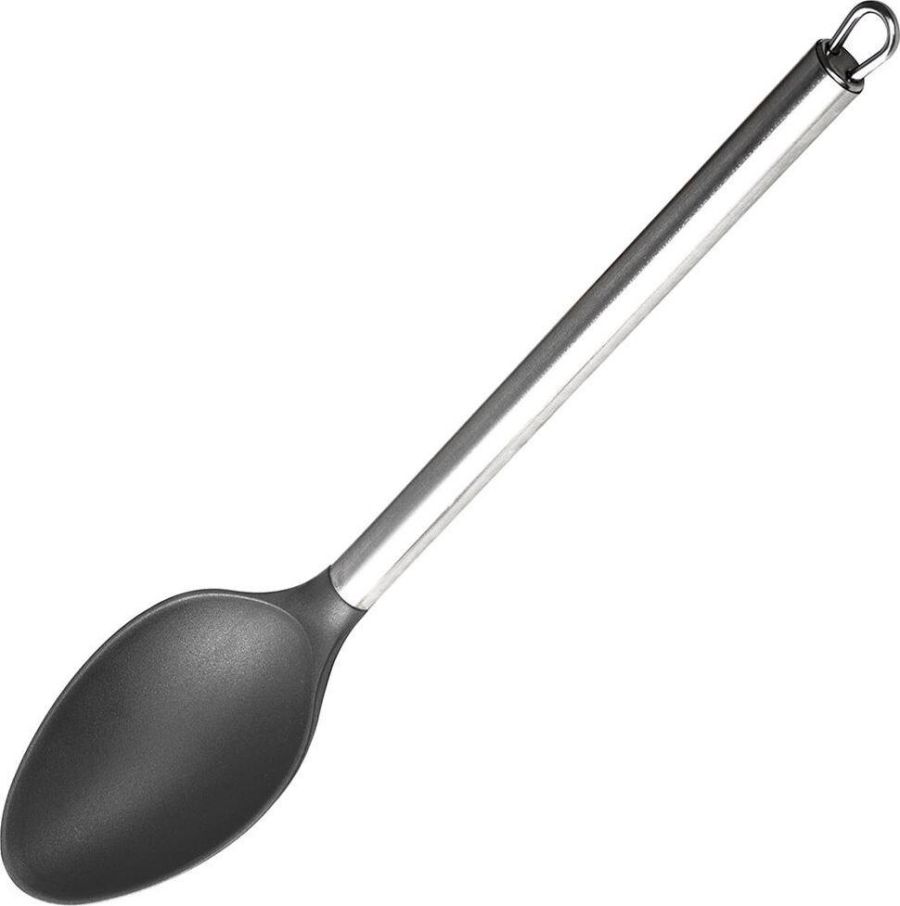 Ложка поварская Материал: нейлон, нержавеющая сталь В ручках предусмотрены отверстия для подвешивания Можно мыть в посудомоечной машине при температуре не более 210°; не рекомендуется оставлять на раскаленной поверхности Упаковка - европодвес