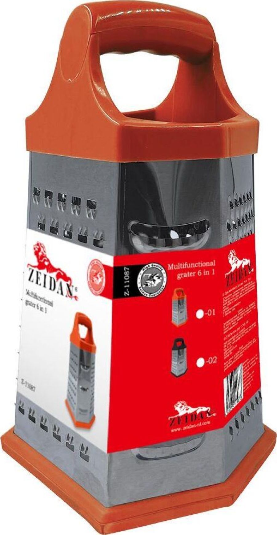 Тёрка многофункциональная 6 в 1 ZEIDAN Z-11087-01, Тёрка многофункциональная 6 в 1 (20х13.5х13.5 см), корпус из высококачественной нержавеющей стали, ручка из пластика, нескользящая основа.
