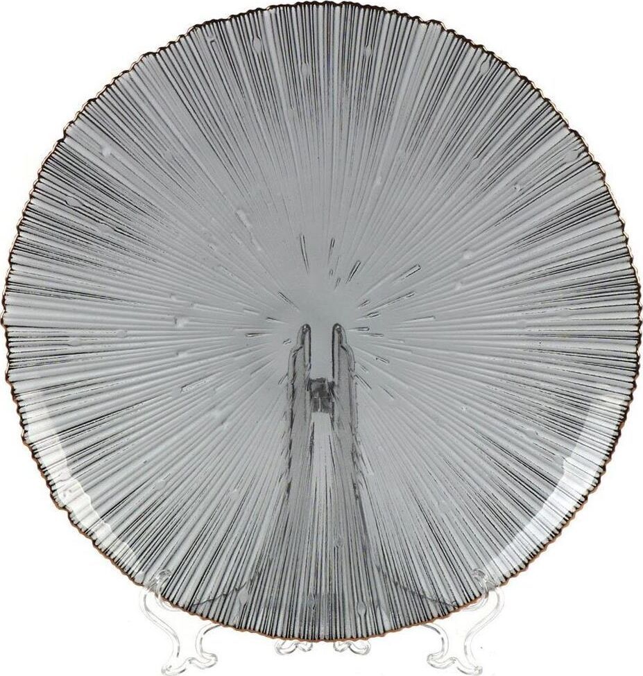Блюдо стекло, 32.5 см, сервировочное, отвод золотом, Графит,