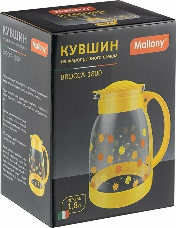 Кувшин, объем - 1800 мл. Корпус выполнен из жаропрочного стекла. крышка/ ручка из пластика.