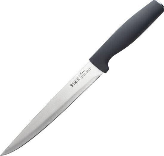 Нож для нарезки 20 см, толщина лезвия 1,7 мм Материал: нержавеющая сталь, пластик Рекомендуется ручная мойка Упаковка - блистер