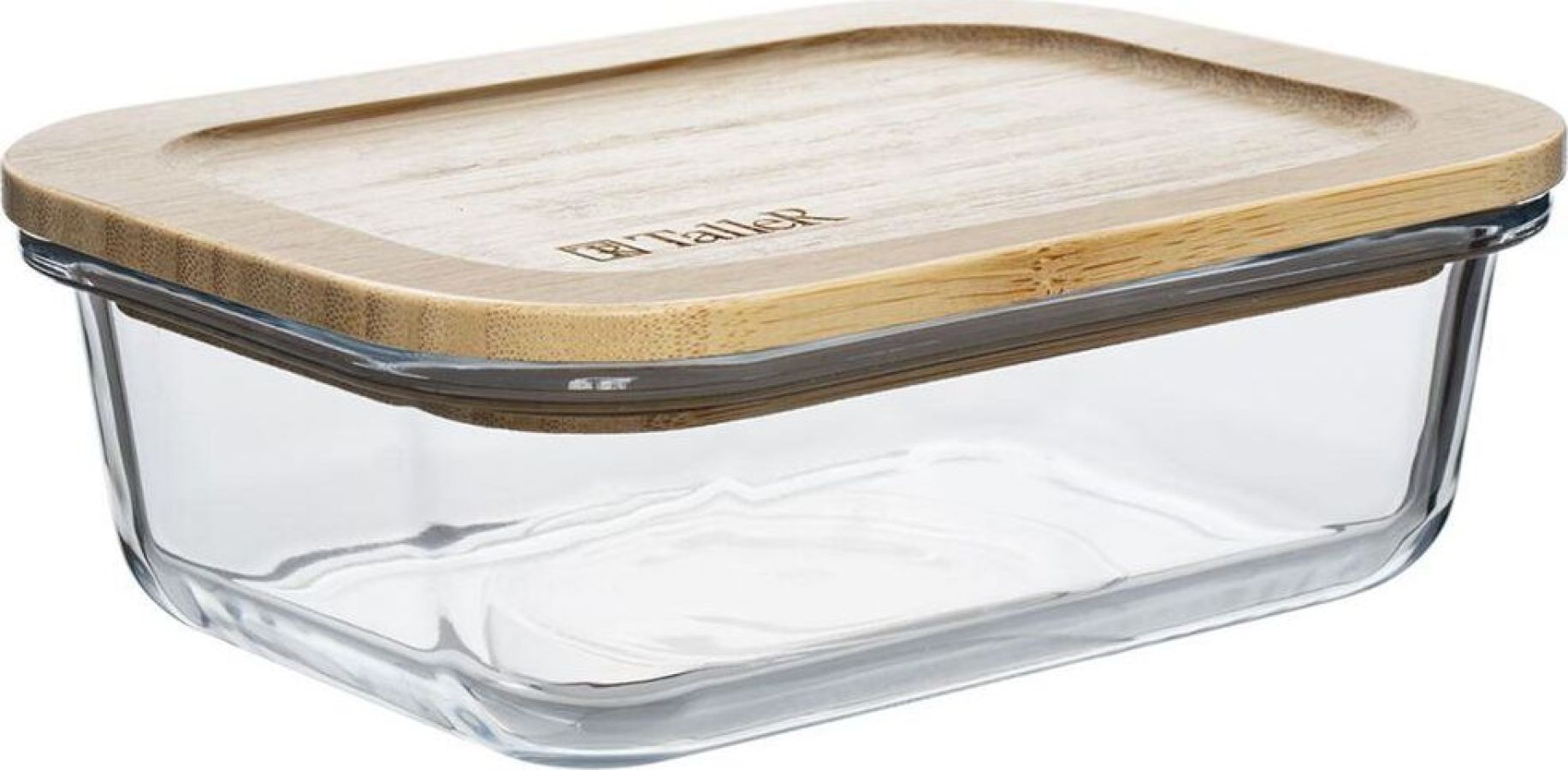 Контейнер жаропрочный, 640 мл, 17*12,5*5,8 см Материал: боросиликатное стекло, бамбук Температурный режим для контейнера: до 400 °C Температурный режим для крышки 0°C ~ +30°C. Контейнер без крышки можно мыть в посудомоечной машине.