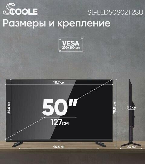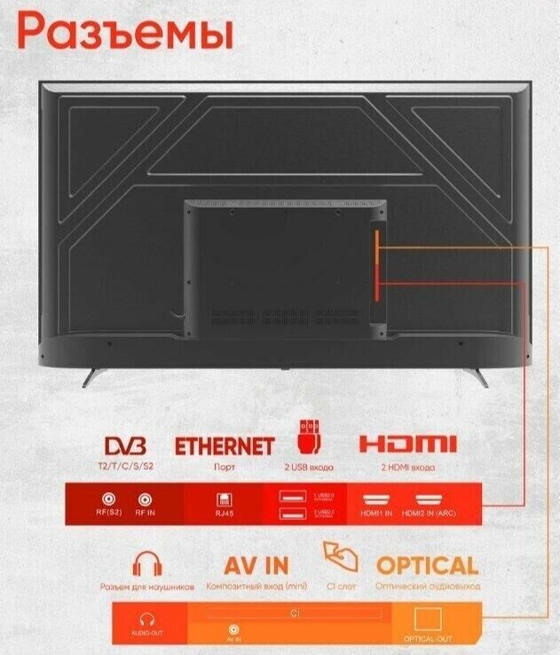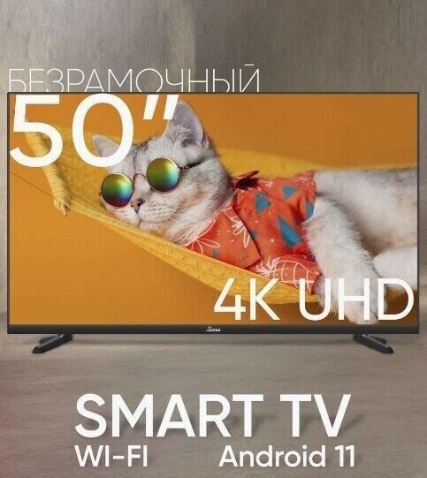 Светодиодная подсветка (LED), безрамочный Диагональ экрана: 127 см Разрешение экрана: 3840 x 2160 пикселей Прием аналогового сигнала: PAL/SECAM Прием цифрового сигнала DVB-T2/T/C/S/S2 Smart TV (доступ в интернет), Family (Atlas), ОС: Android 11, Wi-Fi Воспроизведение аудио-, фото- и видеофайлов через USB Стереозвук NICAM, Dolby Digital Прогрессивная развертка Рабочее напряжение: ~100–240 B, 50 Гц Цвет: черный