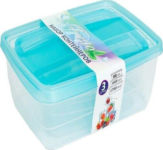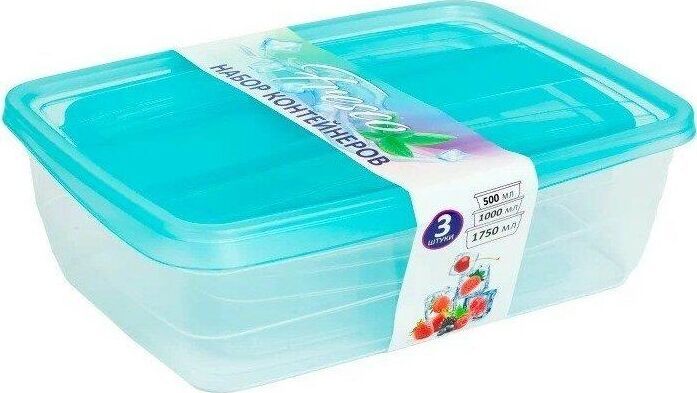 Комплектация: контейнер с крышкой 1750 мл - 1 шт., контейнер с крышкой 1000 мл - 1 шт, Контейнер с крышкой 500 мл - 1 шт