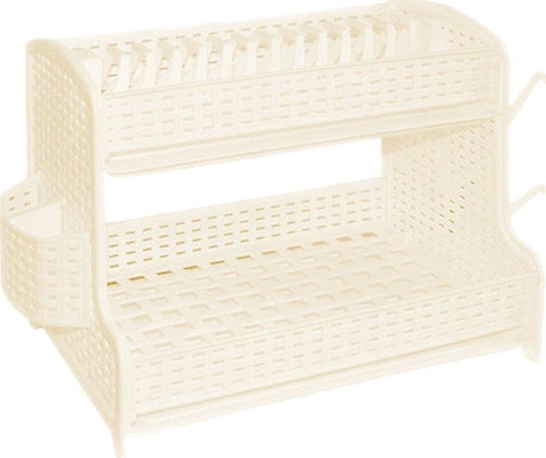 ЦВЕТ: слоновая кость. РАЗМЕР ИЗДЕЛИЯ: 290 x 510 x 320 мм. МАТЕРИАЛ: Полипропилен. Изделие из пищевого пластика для сушки вымытой посуды. Имеет секции для размещения тарелок и столовых приборов, а также крючки для кружек, стаканов и крышек от кастрюль и сковородок. Съемный поддон соберет остатки воды, которая стекает с посуды. Текстура с имитацией натурального плетения «Ротанг» привнесет уют в ваш интерьер и придаст индивидуальность.