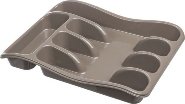 ЦВЕТ: капучино. РАЗМЕР ИЗДЕЛИЯ: 258 x 330 x 54 мм. МАТЕРИАЛ: Полипропилен. Изделие из пищевого пластика для компактного хранения столовых приборов. Разделители в лотке позволят содержать в порядке весь столовый набор и без труда находить нужный предмет кухонной утвари. Габариты лотка оптимальны для его размещения в кухонных ящиках самых распространенных вариантов по ширине и глубине.